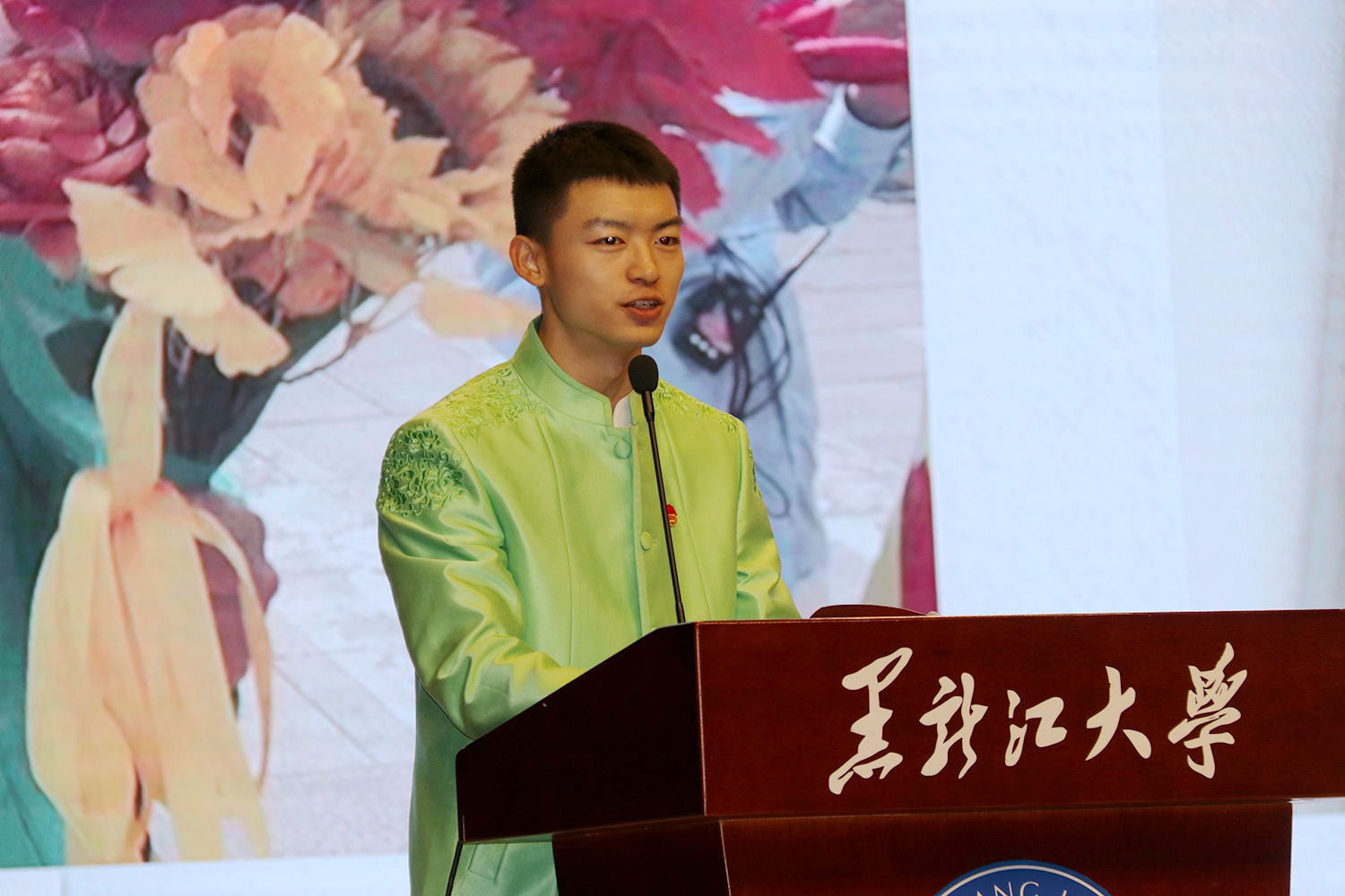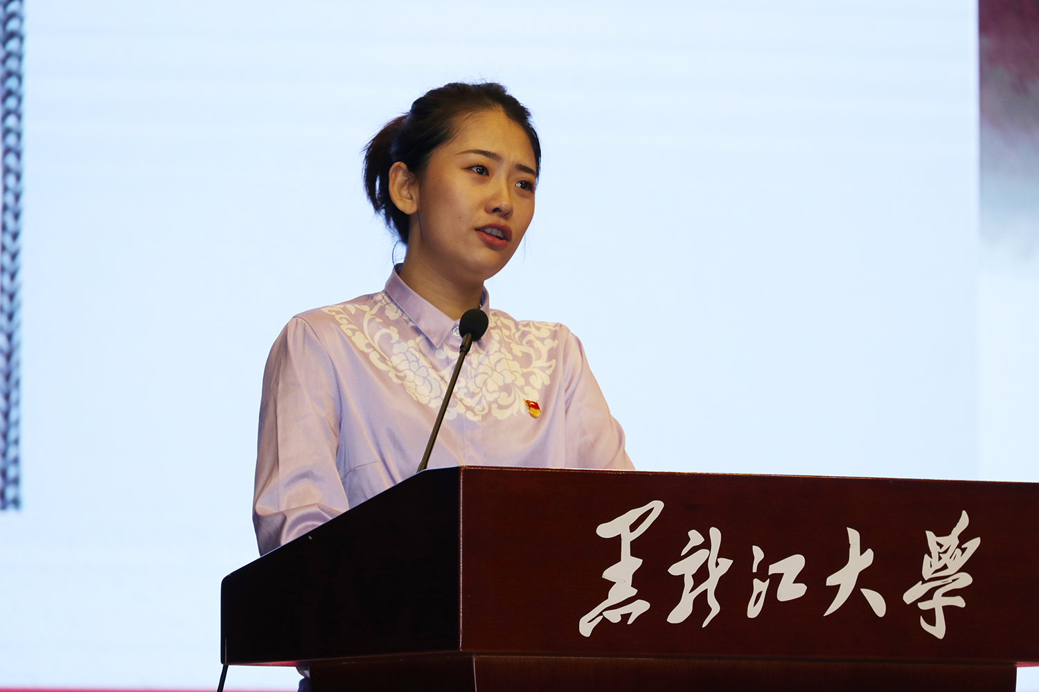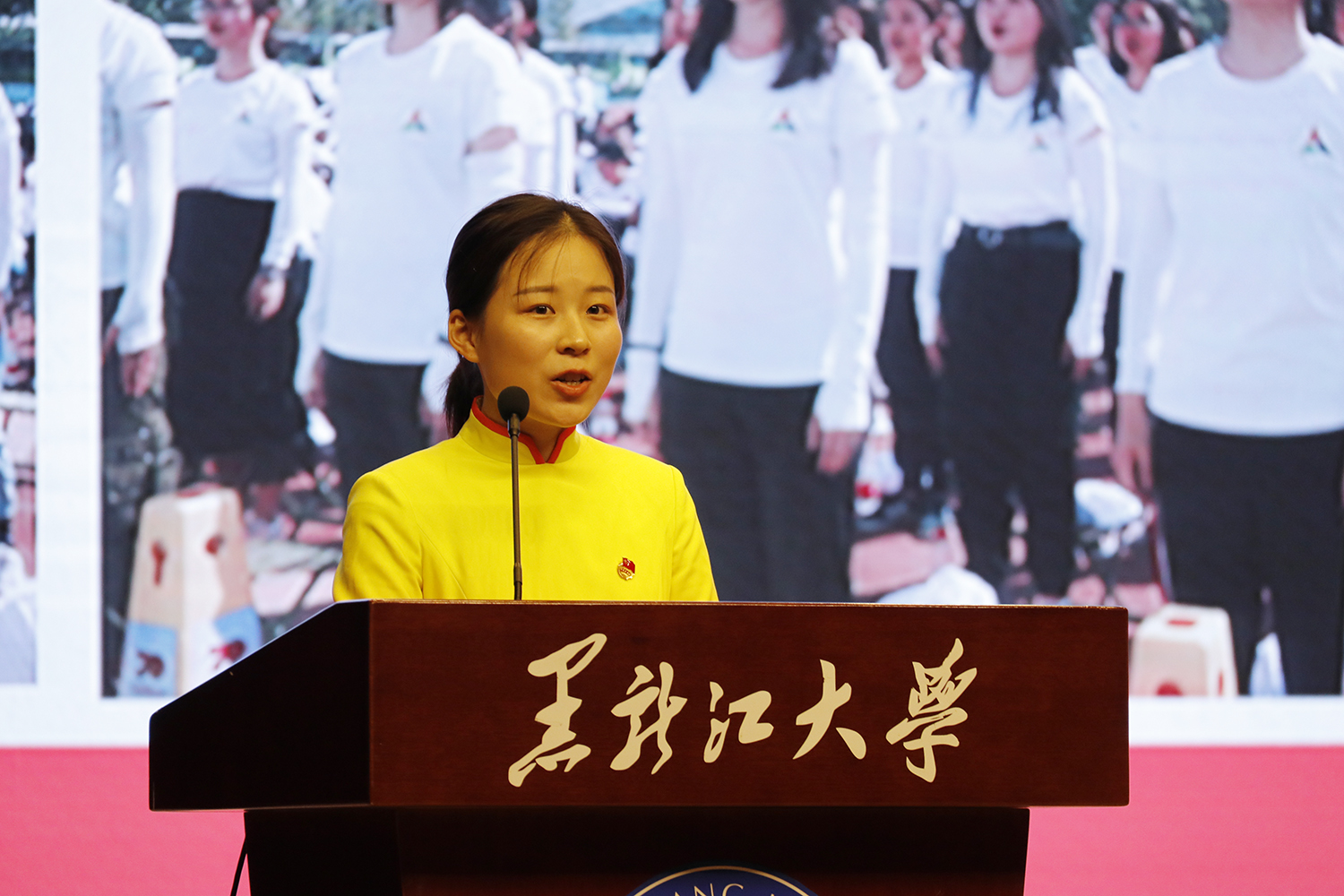 报告会在全场齐唱国歌声中开始。宣讲团成员以《跨越一千公里的距离只为一千米的欢愉》描绘了作为一名龙江人,在长安街上目睹家乡的彩车、在群众游行中高喊“祖国万岁”那些永生难忘的瞬间;以《精彩绽放耀党旗》诉说一名入党积极分子在参加广场联欢舞蹈团队时,耳濡目染9万余名首都师生克服困难、坚持不懈、顽强拼搏的精神,对党的认识进一步升华,最终成为一名光荣的中国共产党党员的心路历程;以《从忠诚走向忠诚》告白一名退伍士兵“退伍不褪色”,既能手握钢枪、保家卫国,也能扎实做好本职,以圆满的服务保障工作接受祖国检阅;以《天安门广场的小白杨 故宫里的守夜人》讲述了庆祝活动背后默默付出的志愿者们,不畏骄阳不畏雨,以地为席以天为盖,昼夜工作,用微笑服务作庆典最坚固的屏障……生动的宣讲报告令现场师生频频泪目。