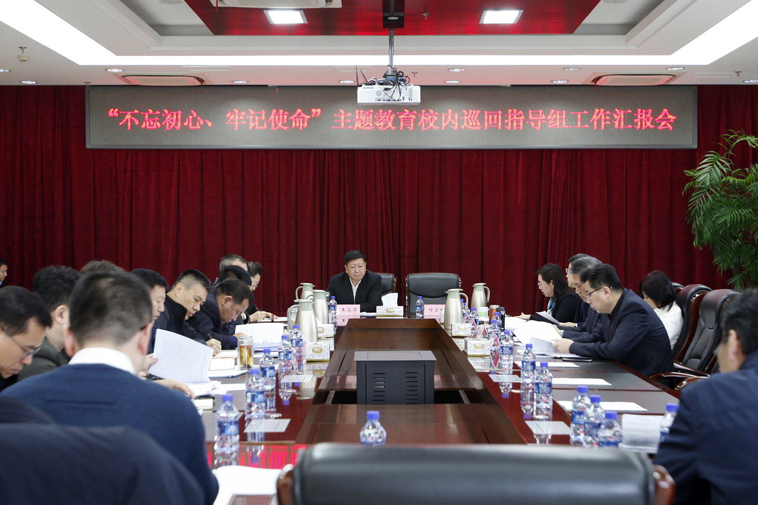 11月12日上午,我校在主楼8楼会议室召开“不忘初心、牢记使命”主题教育校内巡回指导组工作汇报会,总结前一阶段主题教育的进展情况,分析存在的问题,研究部署下一步的工作。主题教育领导小组成员,校内巡回指导组全体组长、副组长参加汇报会。本次汇报会由校党委书记王永清主持。