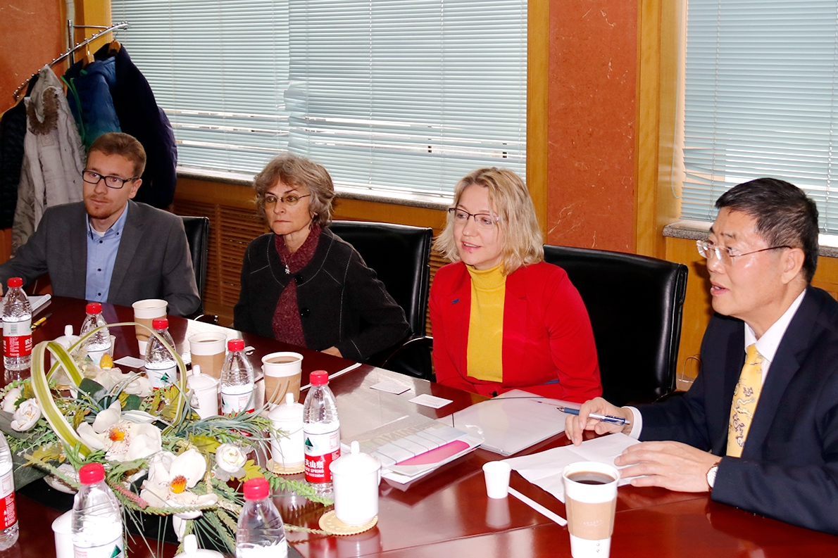 赫拉德茨—克拉洛韦大学教育学院对外语言中心主任Mrs.Vera Tauchmanova以及国际办公室项目官员Mr. Martin Mensik,中国前驻捷克使馆商务参赞刘明国陪同来访。(摄影:张芳洁)