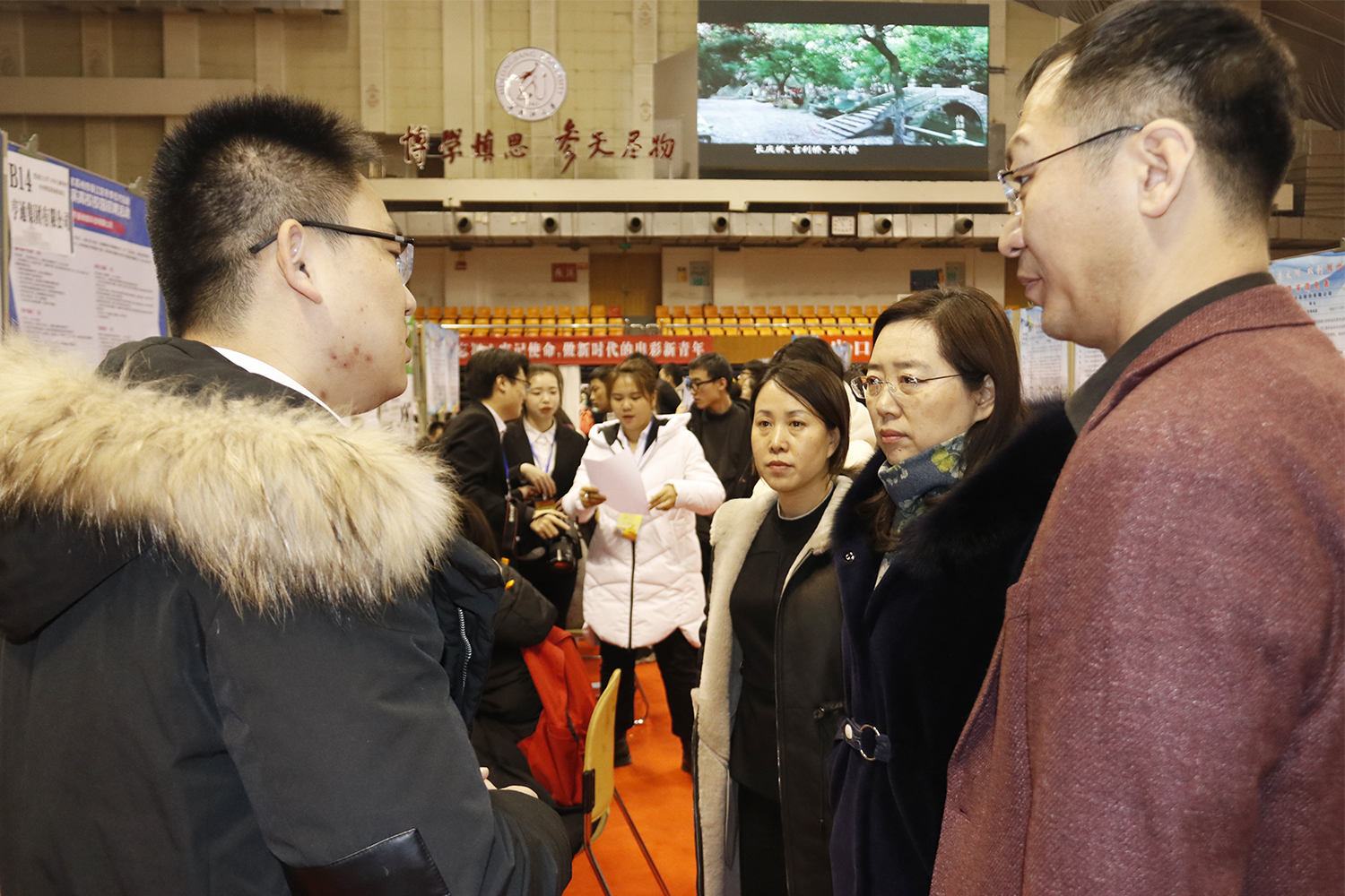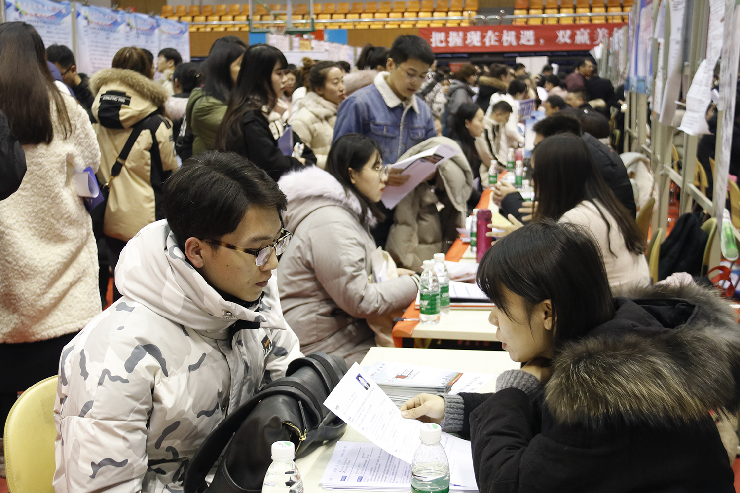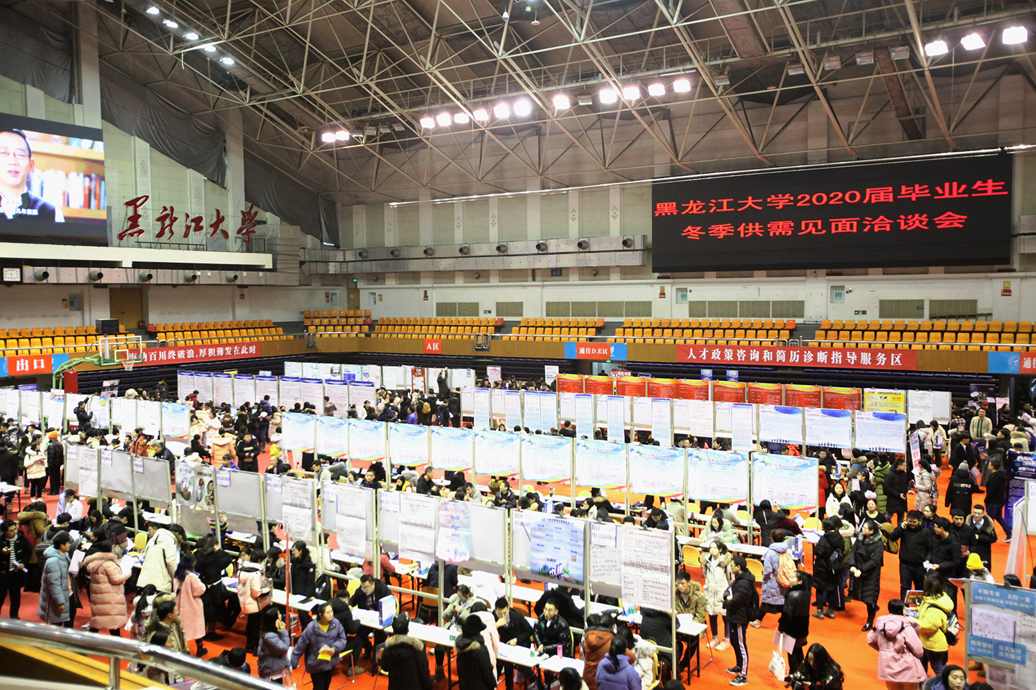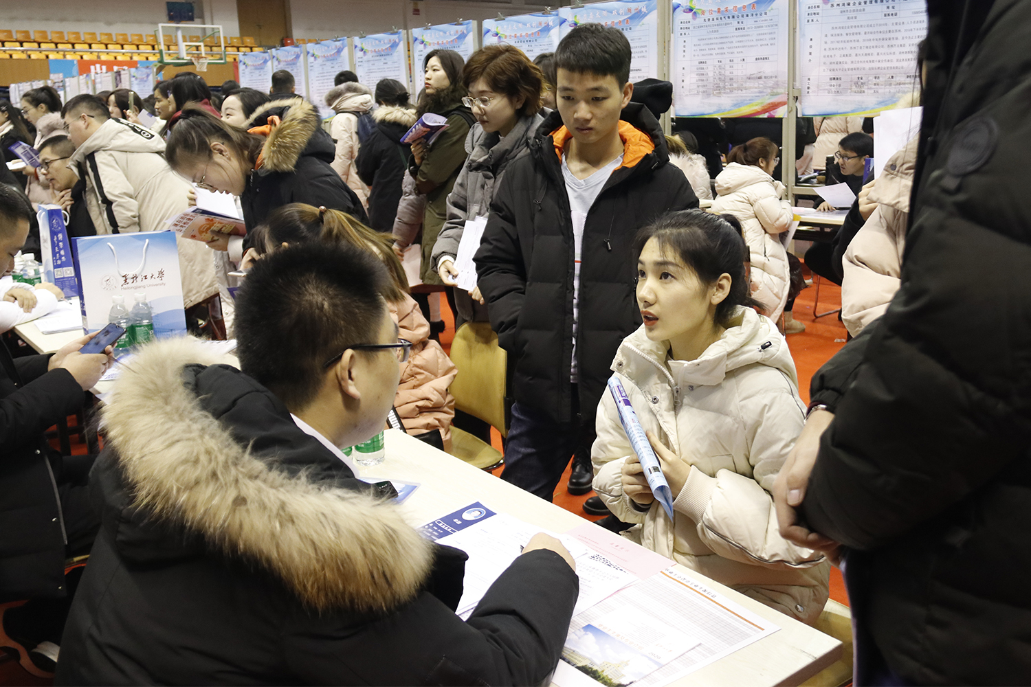12月27日上午,我校在体育馆召开2020届毕业生冬季供需见面洽谈会。本次招聘会有浙江湖州、绍兴、江苏吴江、昆山、盐城、天津6个地市企业组团参会。本次包括教育单位、国有企业、民营企业、三资企业等性质的单位在参加此次洽谈会,与会单位涵盖制造业、金融业、公共管理、电子等多个行业,来自于广东、吉林、浙江、江苏、黑龙江等21个省份78个城市,376家单位,提供岗位15808个,为我校毕业生提供包括研发、技术、管理、销售等多种岗位,覆盖了我校全部专业,本次招聘会共有4786毕业生到招聘会现场,投递简历9000余份。