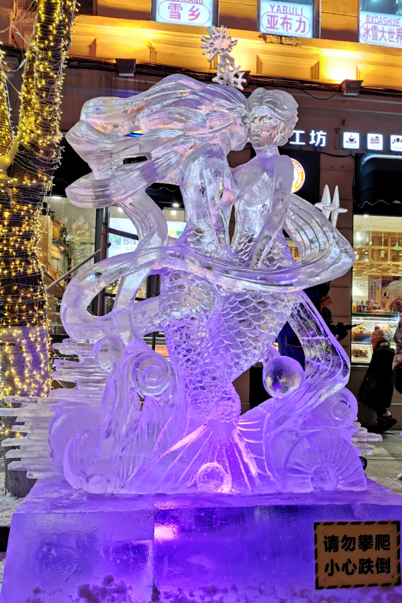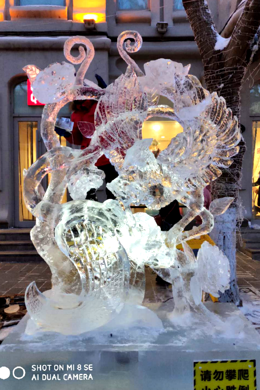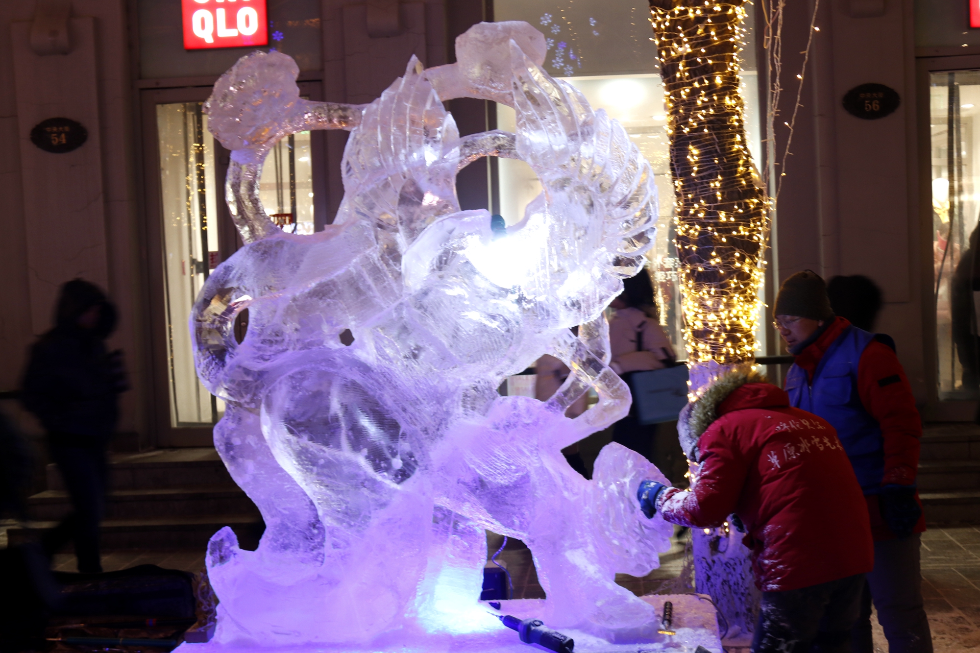 开幕仪式后,各高校参赛选手们开始了为期3天的现场冰雕创作与制作。本次比赛以“冰雪筑梦、爱我中华”为主题,立足于新中国成立70周年光辉成就、传承和弘扬中华优秀传统文化、聚焦“不忘初心,牢记使命”的时代主题。参赛者使用多种冰雕工具,将天然大冰块打造成拥有3D效果的冰雕塑,充分发挥了参赛者的艺术造型技能和空间想象力,使中外游客们在融入到百年老街“赏冰乐雪”的新年气象中。