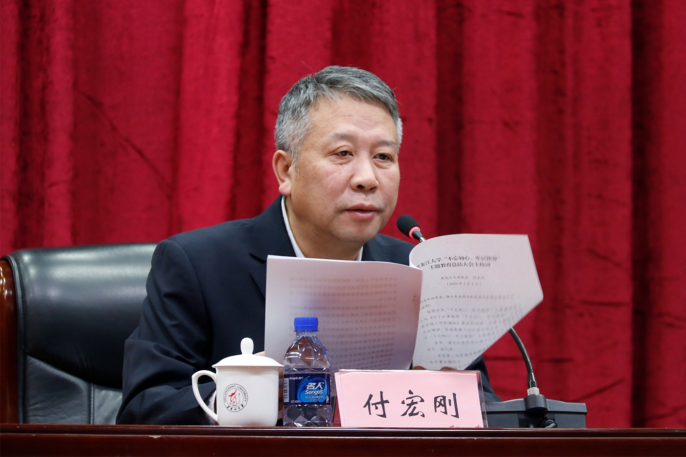 付宏刚校长指出,全校上下要深入贯彻落实中央、省委有关精神,深化巩固主题教育成果,进一步提高政治站位,把全面从严治党要求真正落到实处;进一步抓好巩固深化,把主题教育成果成效真正落到实处;进一步强化担当作为,把强校发展具体实践真正落到实处。各级党员领导干部要时刻把“初心”和“使命”融入到推进学校办学事业发展的具体实践中,深入落实三大办学战略,做好三篇大文章,努力开创学校“双一流”建设发展新局面,为我省全面振兴全方位振兴发展,为实现“两个一百年”奋斗目标、中华民族伟大复兴的中国梦作出新的贡献。(摄影:赵春争 王庆莲)