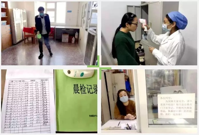 疫情就是命令,防控就是责任。全校上下听从领导、统一行动,迅速把学校有关决策部署落到实处,有效做好防控工作。学校加强了留校学生管理,在学生公寓设七道防线,即集中住宿管理、每日测量体温、每日消毒通风、承诺不出校园、进出公寓登记制、强化公寓值班、谢绝非本楼访客;自1月26日起关闭学校图书馆、博物馆、体育馆等各类公共文化场馆;对食堂、宿舍、浴池等服务部门(单位)进行日常通风和消毒,要求有关人员一律佩戴口罩上岗。