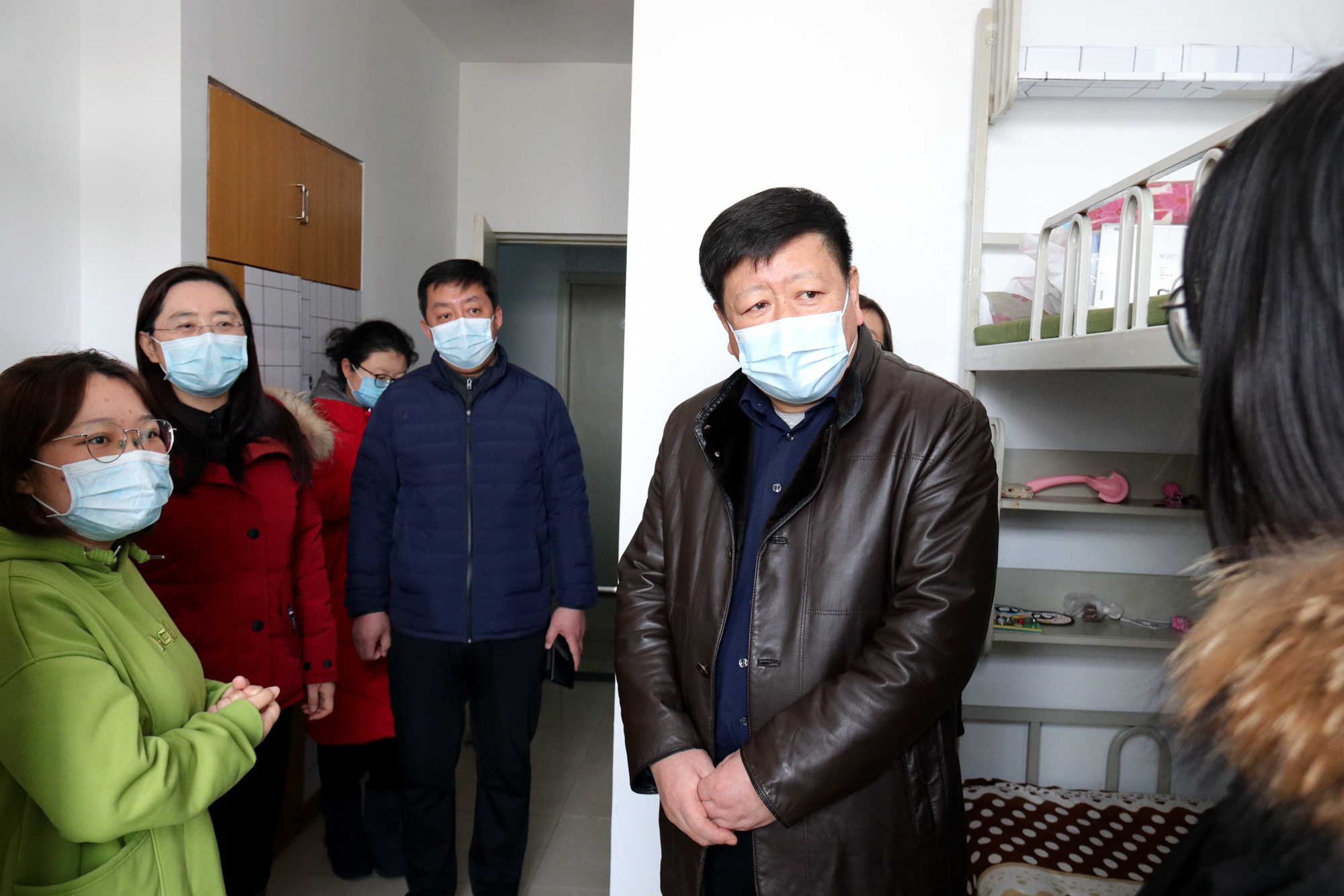会后,王永清书记、丁宏副书记、陈文远副校长一行来到主楼正门前参加学生开学入校防控疫情演练,检查测量体温,入校扫码等流程,详细了解学生入校防控措施,并对演练的具体环节、细节提出了改进要求。王永清书记强调,务必加强学生入校排查监测工作,严格落实防控措施,切实做到“早发现、早报告、早隔离、早治疗”。在子衿园综合南楼,王永清书记一行检查了学生宿舍防控情况,亲切慰问了住在这里的8名留校学生,为他们带来了饼干、牛奶等慰问品,并鼓励同学们安心学习,科学防护,坚定必胜信念,共同打赢这场疫情防控阻击战!