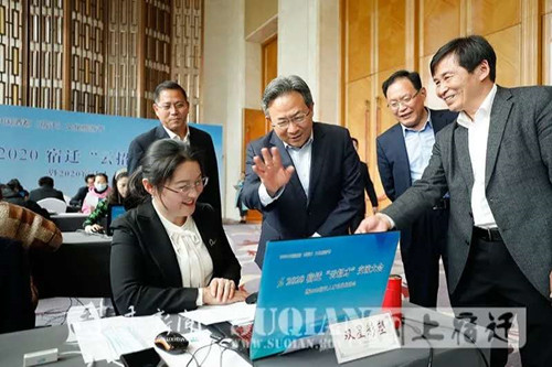 4月20日下午,宿迁市委、市政府举办“智汇宿迁 云聚英才”云招才交流会,在我校设立分会场,我校党委副书记丁宏作为特邀嘉宾代表高校发言,招生就业指导中心主任陈宝凤,李洪明、邢美东老师参加分会场活动。