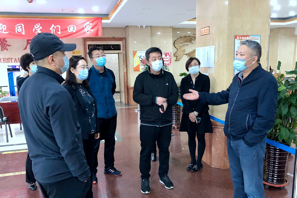在学府宾馆第一隔离点,付宏刚校长、丁宏副书记详细了解工作流程,模拟演练了进门测温、扫码、办理入住的整个流程,并亲自到住宿房间和防疫物资储存间进行查看,付宏刚校长叮嘱工作人员务必确保消防安全,做好学生返校工作。在子衿园综合南公寓,付宏刚校长、丁宏副书记详细了解学生返校后的住宿安排情况,实地查看了住宿环境,了解物资储备情况,并亲自模拟演练了办理公寓入住的整个流程,要求相关部门务必做好应急处置措施,确保学生返校工作安全有序进行。