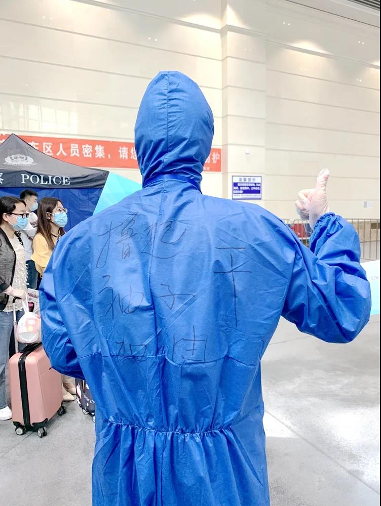 提起背后的文字,他难掩激动地说,“我是2016年6月7日入党的,今天刚好是我入党四周年的纪念日。在车站等待学生的时候,我跟丁宏副书记说起今天纪念日的事情,请她在防护服后面写一句话,她写下了这句勉励的话。真的很激动!”“在这个特殊的日子里,我特别想感谢学校,把迎接返校学生这么重要的任务交给我,这是对我的无比信任,我深深感受到责任和使命,也很自豪能参与这项工作。从本硕到工作,我一直是在黑大度过的,我爱6686,也希望我的大学越来越好!”