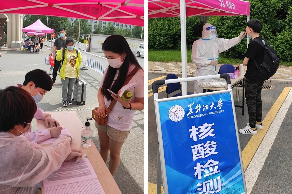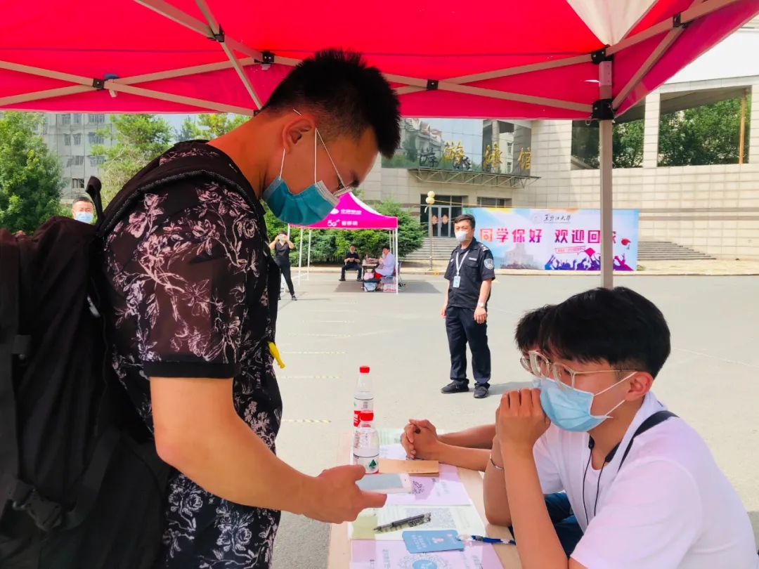 13日下午2时,我校学生返校专门通道准时开启。经过行李消杀、测温、扫码登记、核酸检测等环节,第二批返校学生顺利地回到久违的黑大校园。校长付宏刚、党委副书记丁宏等学校领导亲切慰问返校学子。