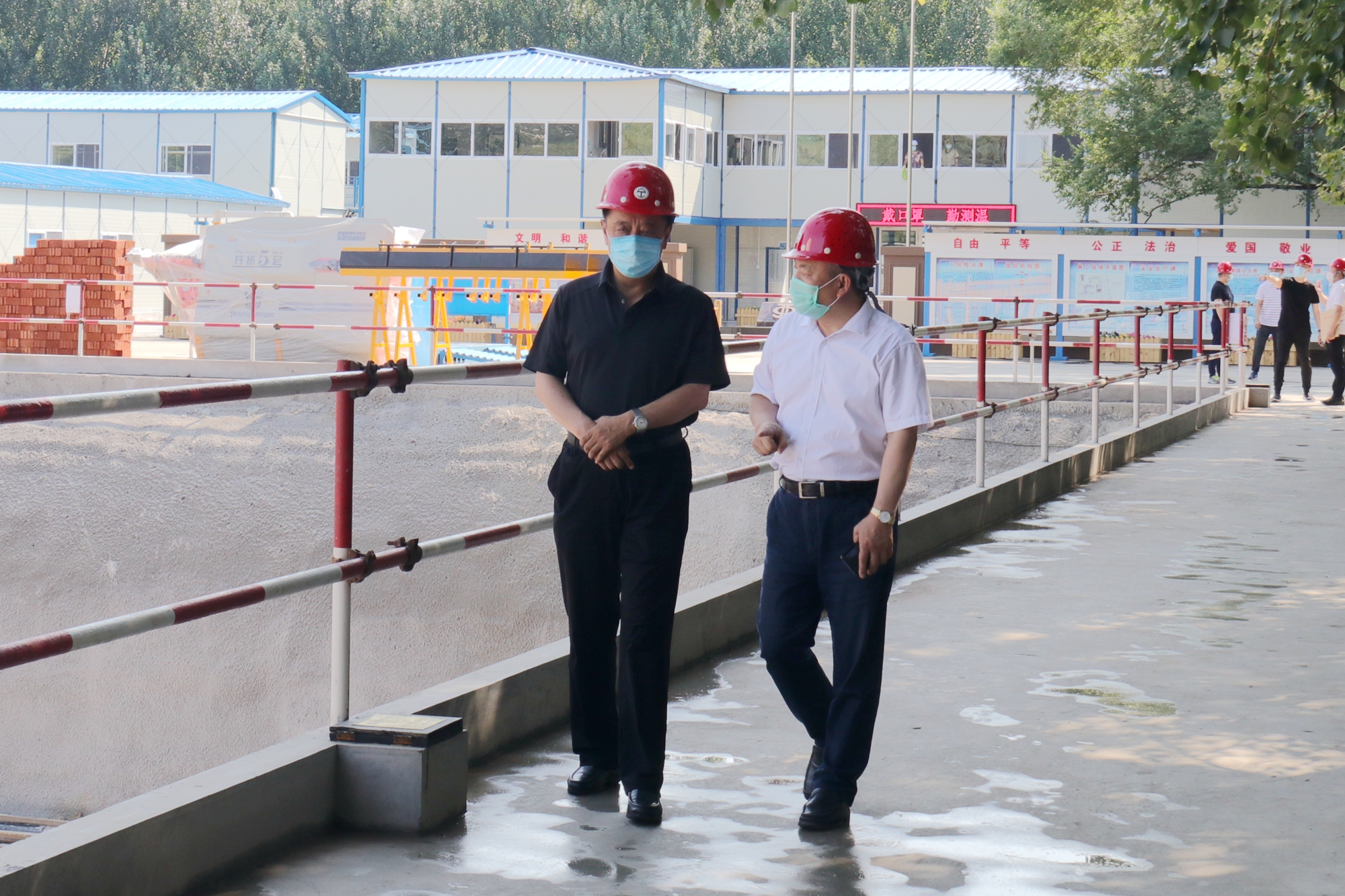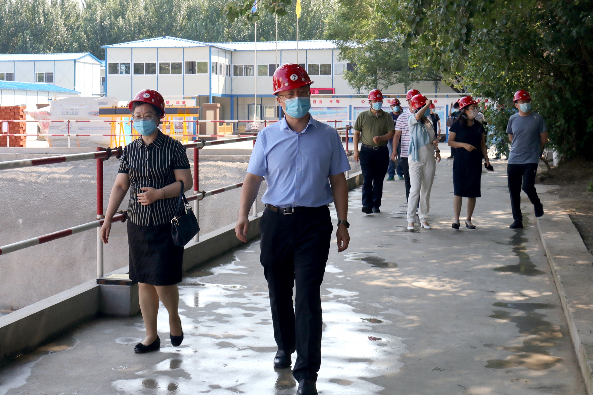 7月10日上午,全体校领导、党委常委深入研究生公寓项目施工现场检查指导工作。相关职能部处负责人等陪同检查。