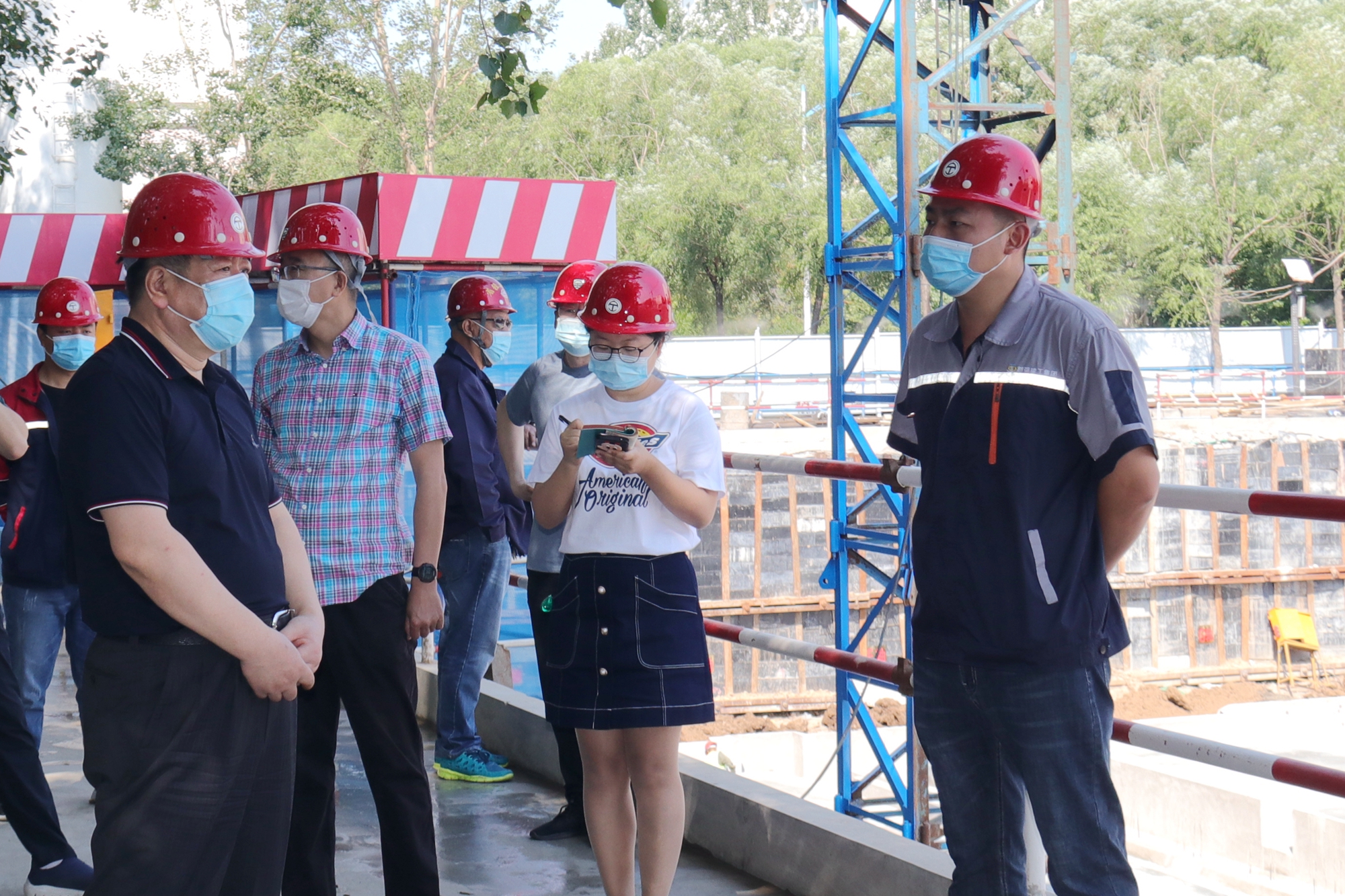 在施工现场,学校领导认真听取了有关负责人对项目施工建设、疫情防控等情况的汇报,详细了解了施工进度、施工安排、工程质量、防疫措施、安全管理等有关情况。