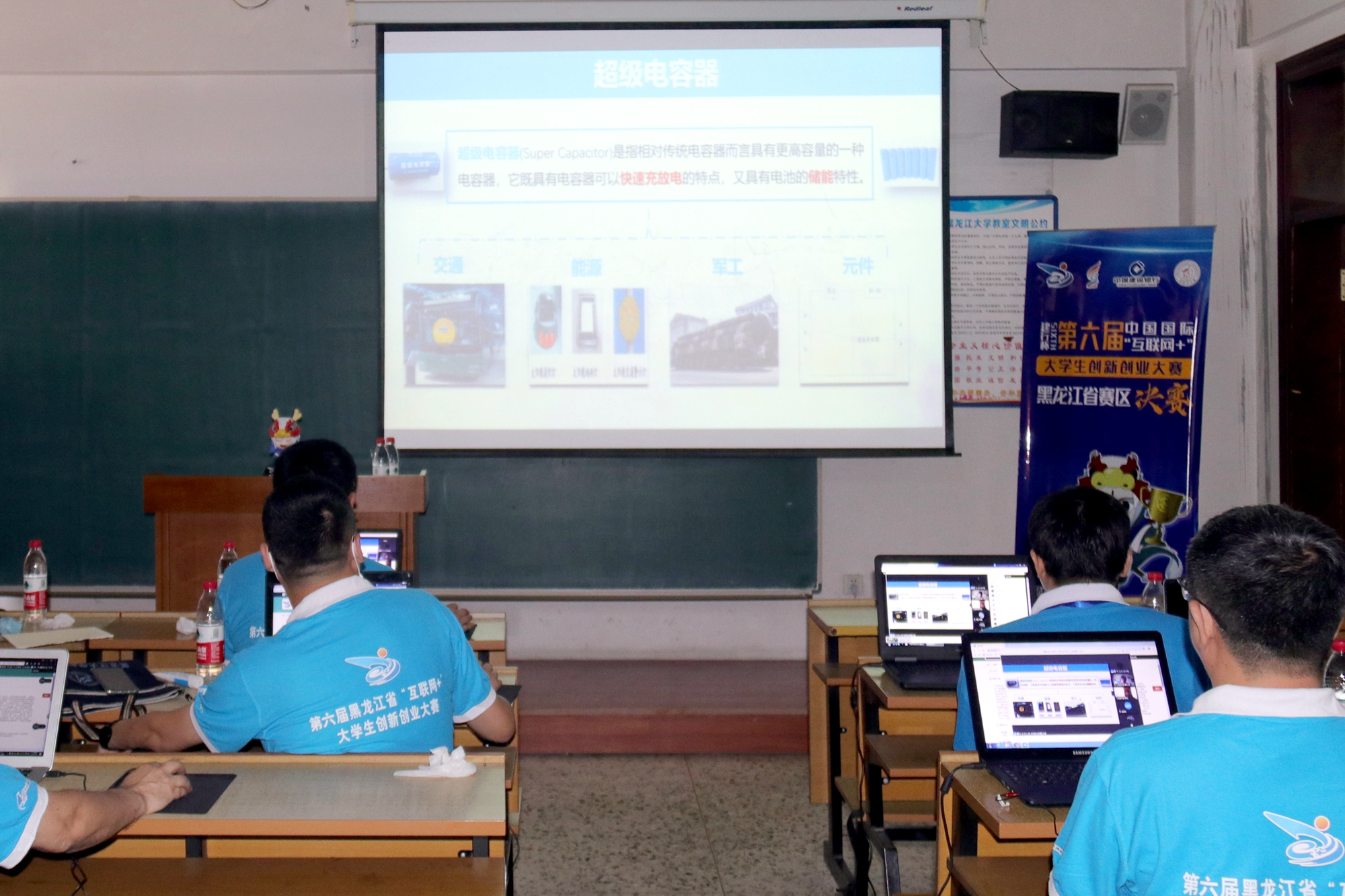 会后,黑龙江省“互联网+”大学生创新创业大赛正式开始,比赛采取线上线下相结合的形式进行。严明副校长、王跃然副处长等到汇文楼赛场检查指导工作。