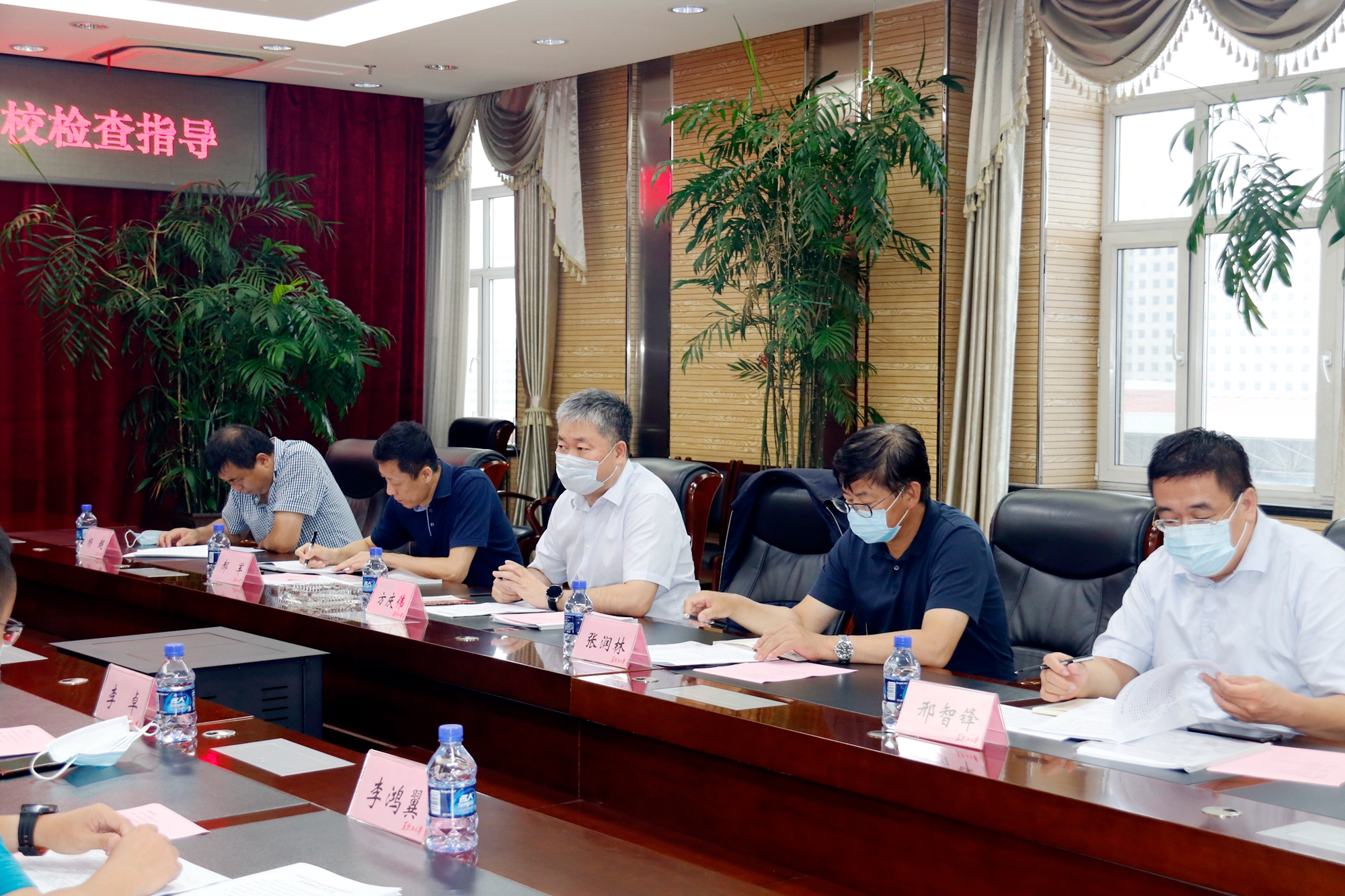 下午2时,检查组与学校领导在主楼8楼会议室召开会议。会上,丁宏副书记详细汇报了学校2020年秋季学期开学准备及疫情防控工作情况。她指出,为确保本学期师生顺利返校,在疫情防控常态化形势下做好新学期工作,最大限度地恢复正常教育教学秩序,按照上级领导的有关部署,学校正在平稳有序推进有关工作。一是确定返校批次安排,经过统筹考虑,学校安排返校报到和开课时间,进行错峰返校入校;二是认真做好开学前准备工作,为确保万无一失,学校积极行动,准确摸排人员健康信息,明确师生返校条件,做好返校防疫和途中防护教育,整治校园环境卫生,组织开展应急演练,做好新生接站报到等准备工作,并认真履行报备验收工作要求;三是严格抓好开学后各项工作,学校将严格管控校园出入,持续强化精准防控,稳妥做好应急处置,加强对师生的思想政治教育,全力确保教学工作的有效衔接,同时做好师生返校后后勤服务保障,强化舆情监测引导等。丁宏副书记表示,学校会不折不扣坚决落实好上级部署和要求,进一步完善有关制度流程,突出重点难点,查找工作漏洞,补齐工作短板,全力确保学生返校和疫情防控工作平稳有序进行。