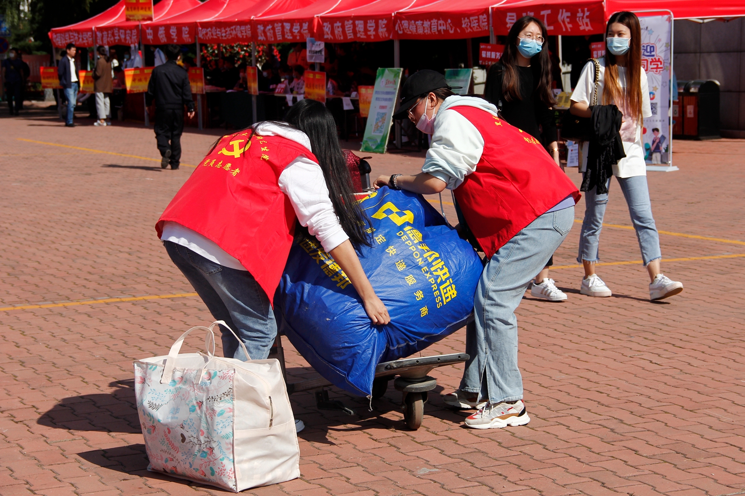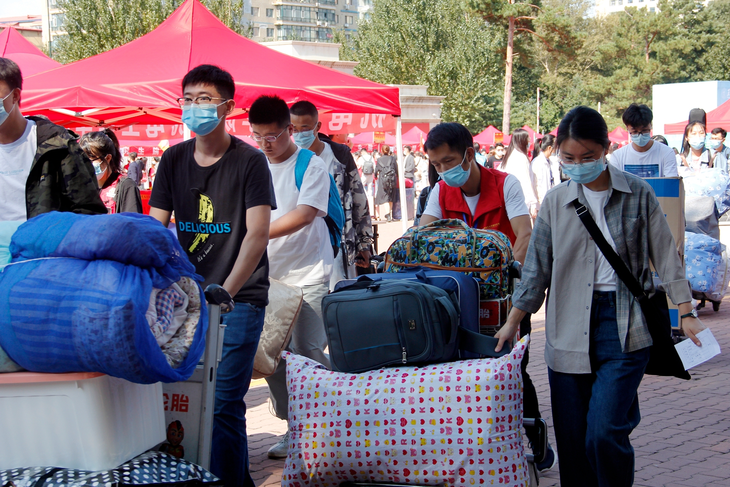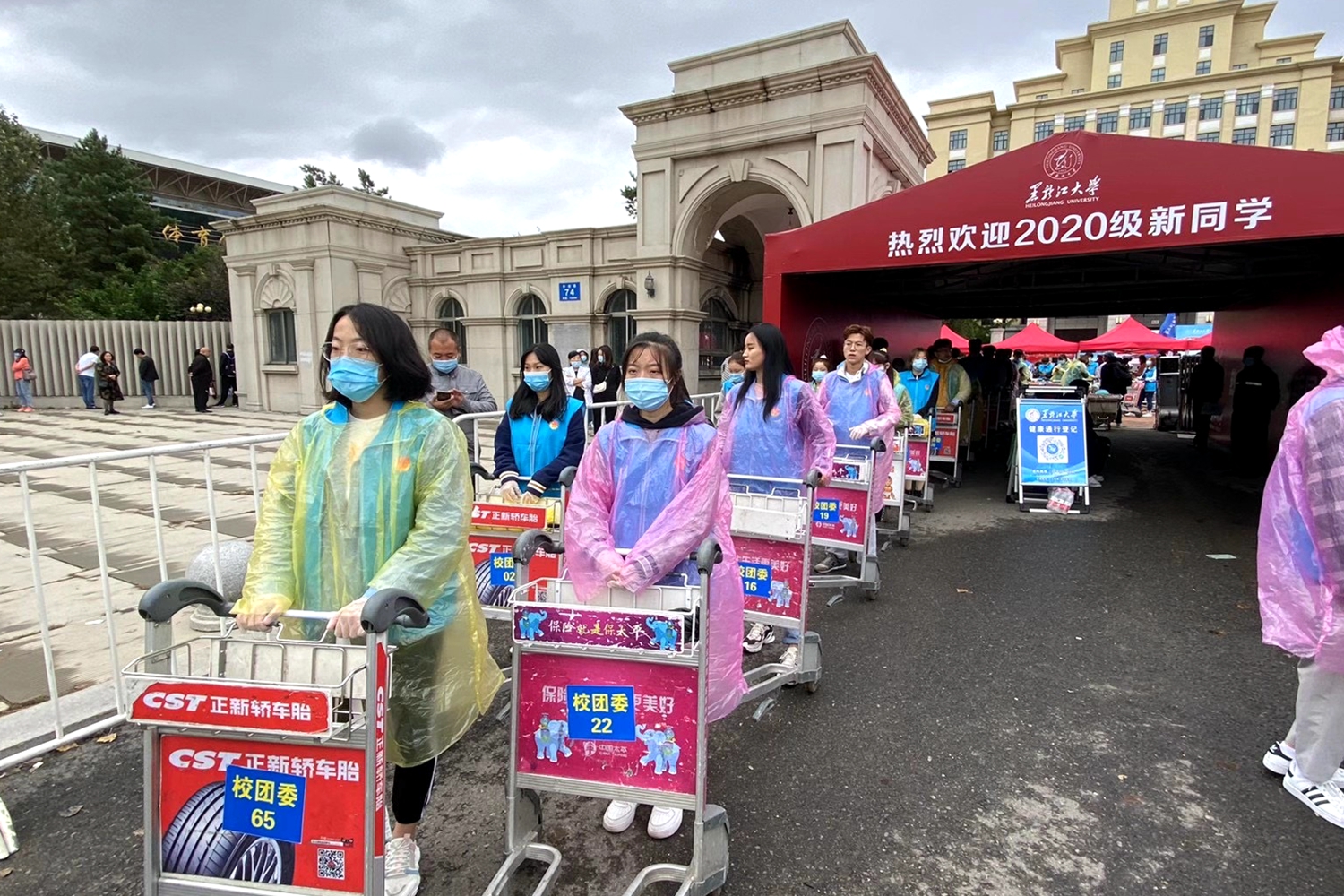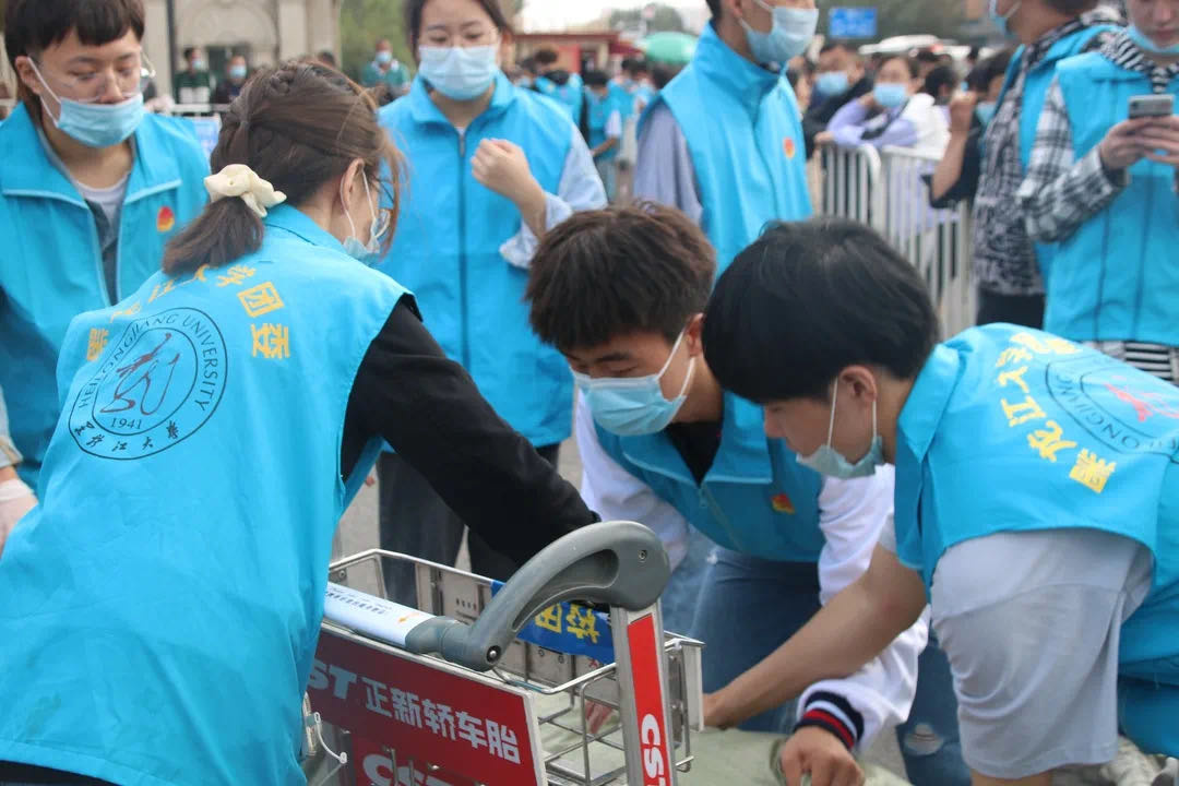 今年受疫情影响,按照上级要求,新生报到只有新生本人可以进校。本着“以学生为本”、“全心全意为学生着想”的想法,为方便广大新生搬运行李,学校专门与哈尔滨太平国际机场协调借用了200余辆手推车,还在校内安排多辆校内中转车,点对点送新生到所在公寓楼。学校在所有新生公寓楼下设置了日用品销售点和流动餐车服务点,并派专人将学生在网上提前预购的床上物品直接送到寝室。学校今年继续为家庭经济困难学生开辟绿色通道,赠送生活用品爱心大礼包。