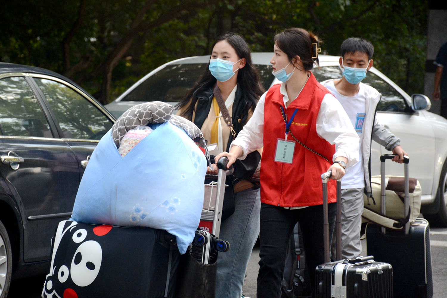 学校与学院积极联动,按照1:2的比例配备志愿者,保证每名新生有至少2名志愿者为他提供全程服务。每名志愿者都经过严格培训,他们为新生答疑解惑,介绍校园,帮助运送行李,陪同办理手续,直到送回寝室顺利入住。无论是阳光灿烂还是暴雨滂沱,三天时间800余名学生志愿者从近万名新生手中接下了30000余件行李……一系列无缝对接、快速高效的暖心行动,让新生第一时间找到了家的感觉,感受到了家的温暖,同时也让家长更放心、更安心。