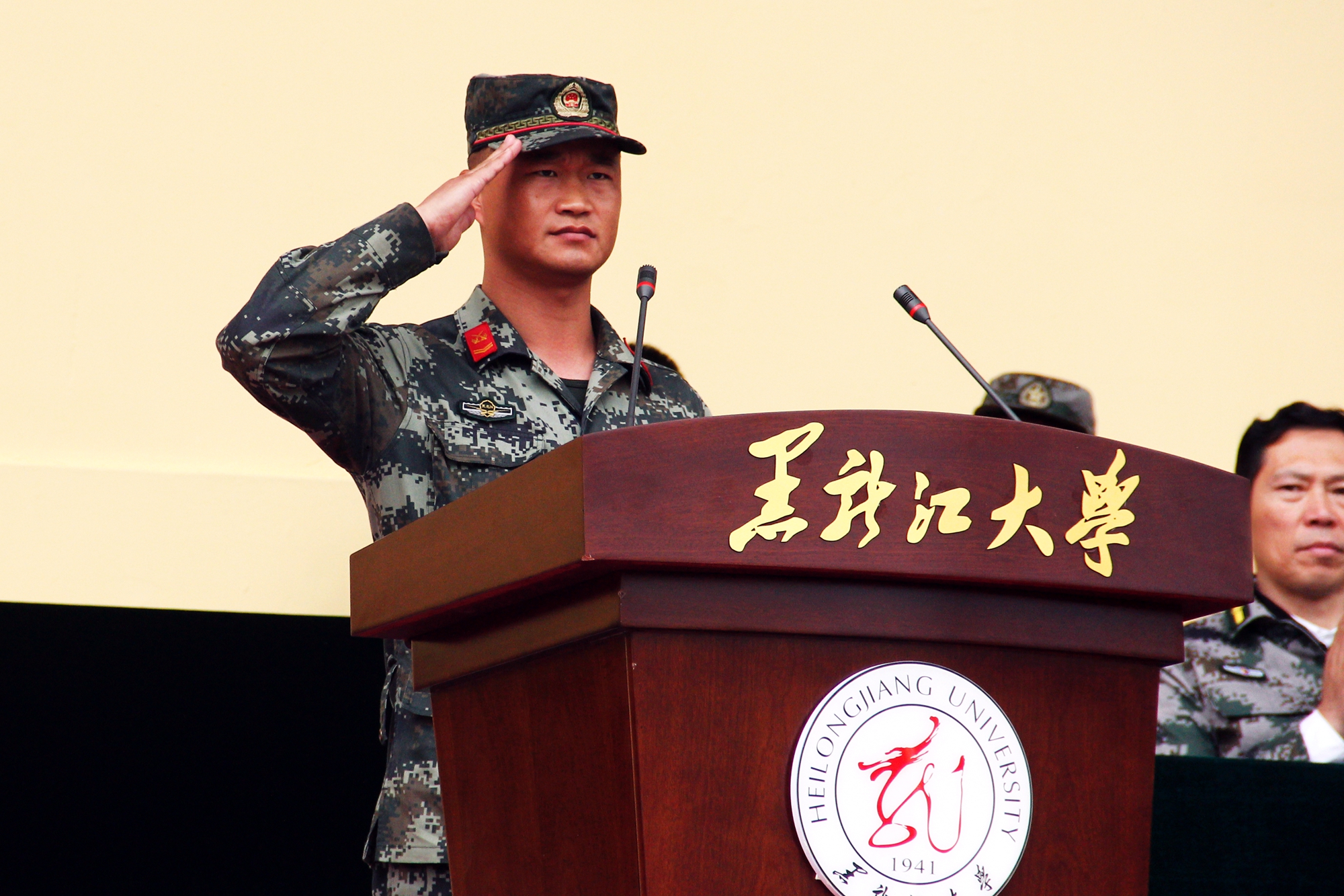 承训部队教官薛大鹏代表全体军训教官发言。他表示,将在军训期间严格遵守有关纪律,认真对待并处理一切事务,引导全体参训学生圆满完成大学第一课,同时也希望新生们服从命令,听从指挥,刻苦训练,精诚团结,不退缩、不抛弃、不放弃,在军训中取得优异成绩。