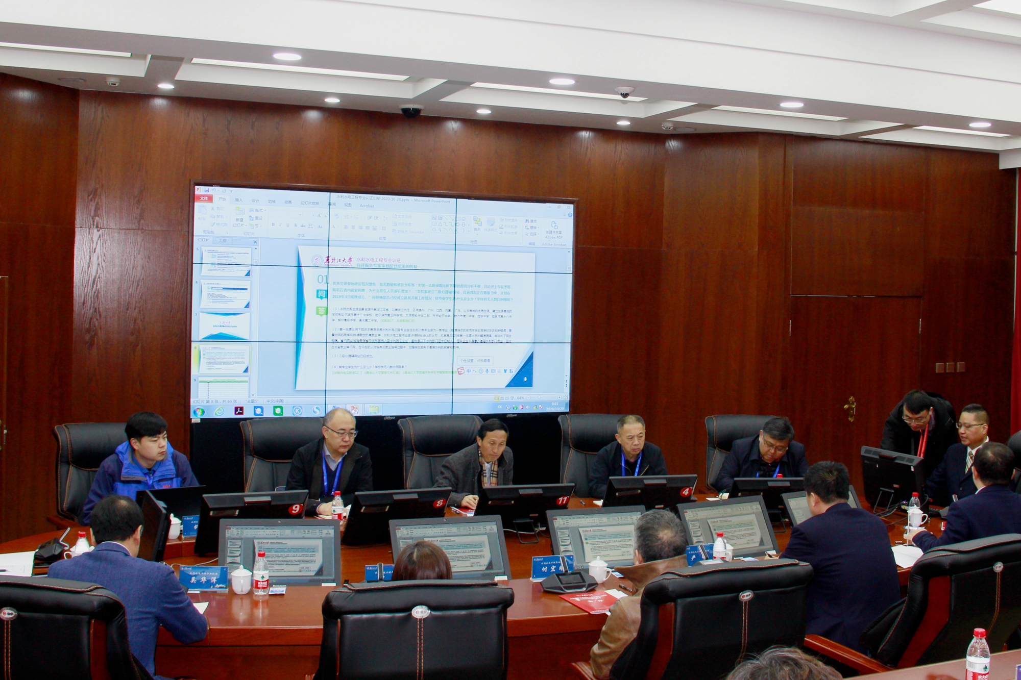随后,我校水利水电工程专业负责人于奎从学校生源、就业方向、教育管理、课程设计、师资队伍等方面共计84个问题对《自评报告》作了补充汇报。