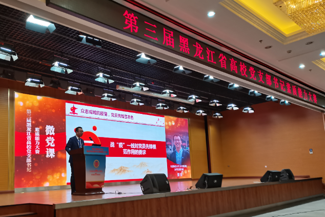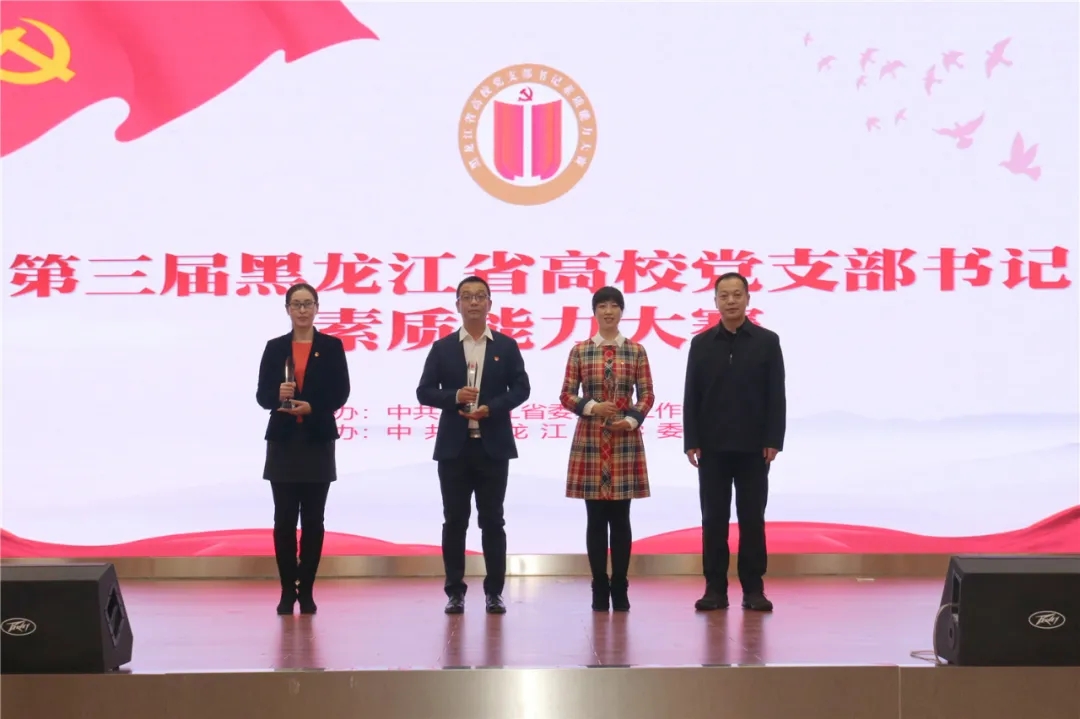 为深入学习贯彻落实习近平新时代中国特色社会主义思想和党的十九大、十九届五中全会精神,持续提升全省高校党支部书记素质能力,全面展示“双带头人”培育工程实施成效,11月18日至20日,由黑龙江省委教育工委主办的第三届黑龙江省高校党支部书记素质能力大赛在我校举行。省委教育工委副书记王震、我校校长付宏刚、省基层办副主任孙世君、我校党委副书记蒋晶洁出席大赛,并为获奖选手颁奖。