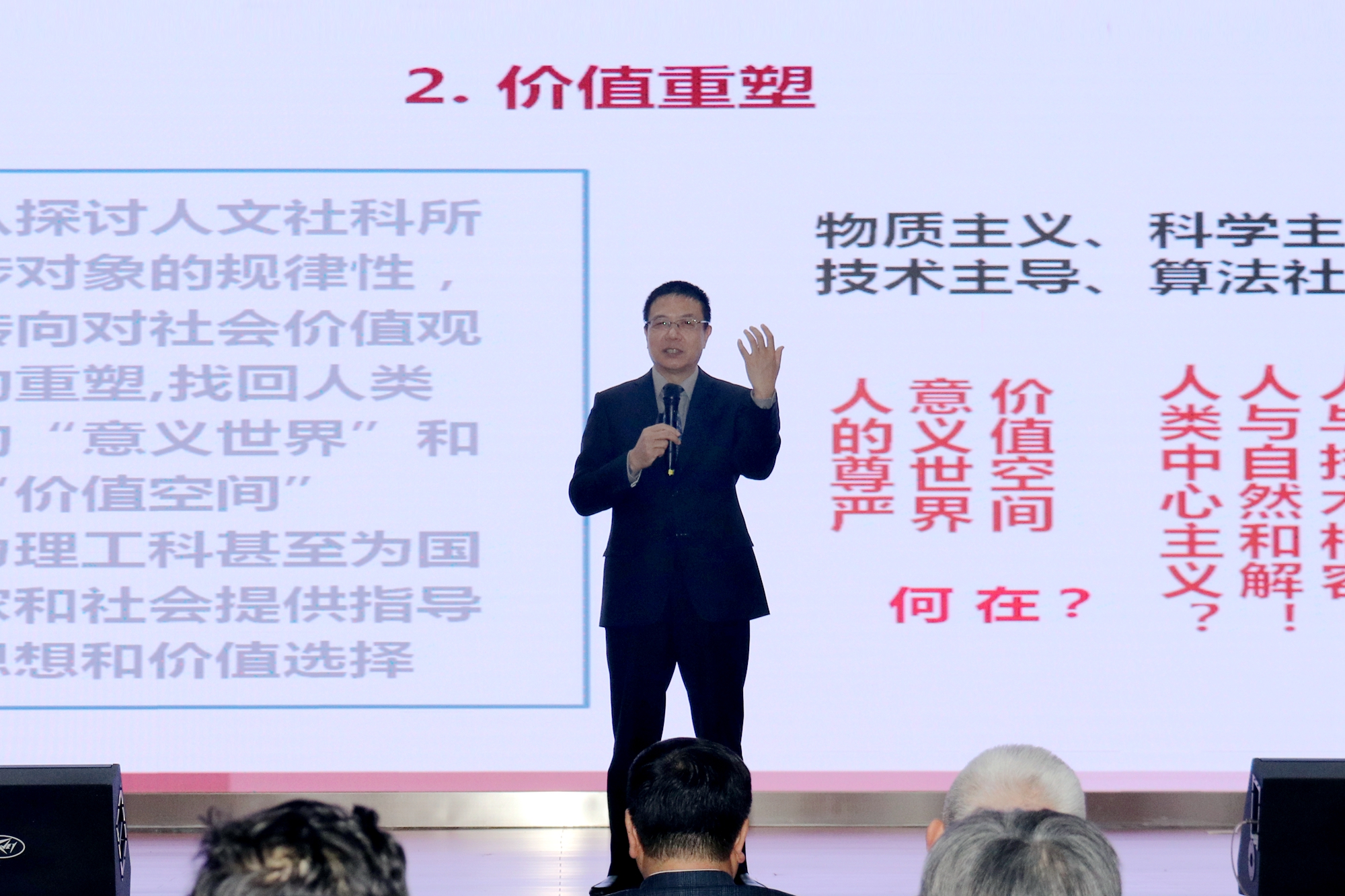 徐飞教授以“新文科建设:思考与行动”为题,围绕为什么要建设“新文科”,新文科“新”在哪里,如何建设“新文科”三个方面做培训。他从世界的新变革、历史的新方位、强国的新期待和教育的新要求四个方面阐述了为什么要建设“新文科”,从论域拓展,价值重塑,话语主导,交叉融合,研究范式等方面诠释了新文科的“新”在理念,使命,内容,方法等方面的体现,提出要立足国情,遵循规律,守正创新,建设具有中国特色的新文科;要强化通识教育、博雅教育、素质教育,培养学生批判性独立思考的能力;要促进学科交叉,宽口径、厚基础、重交叉,促进学科融合;要打造数智人文,优化现有专业,创设新型专业;要推动人才培养模式创新,培养一批有人文涵养,知识渊博的文科人才。(摄影:冯旭 刘钰昊)