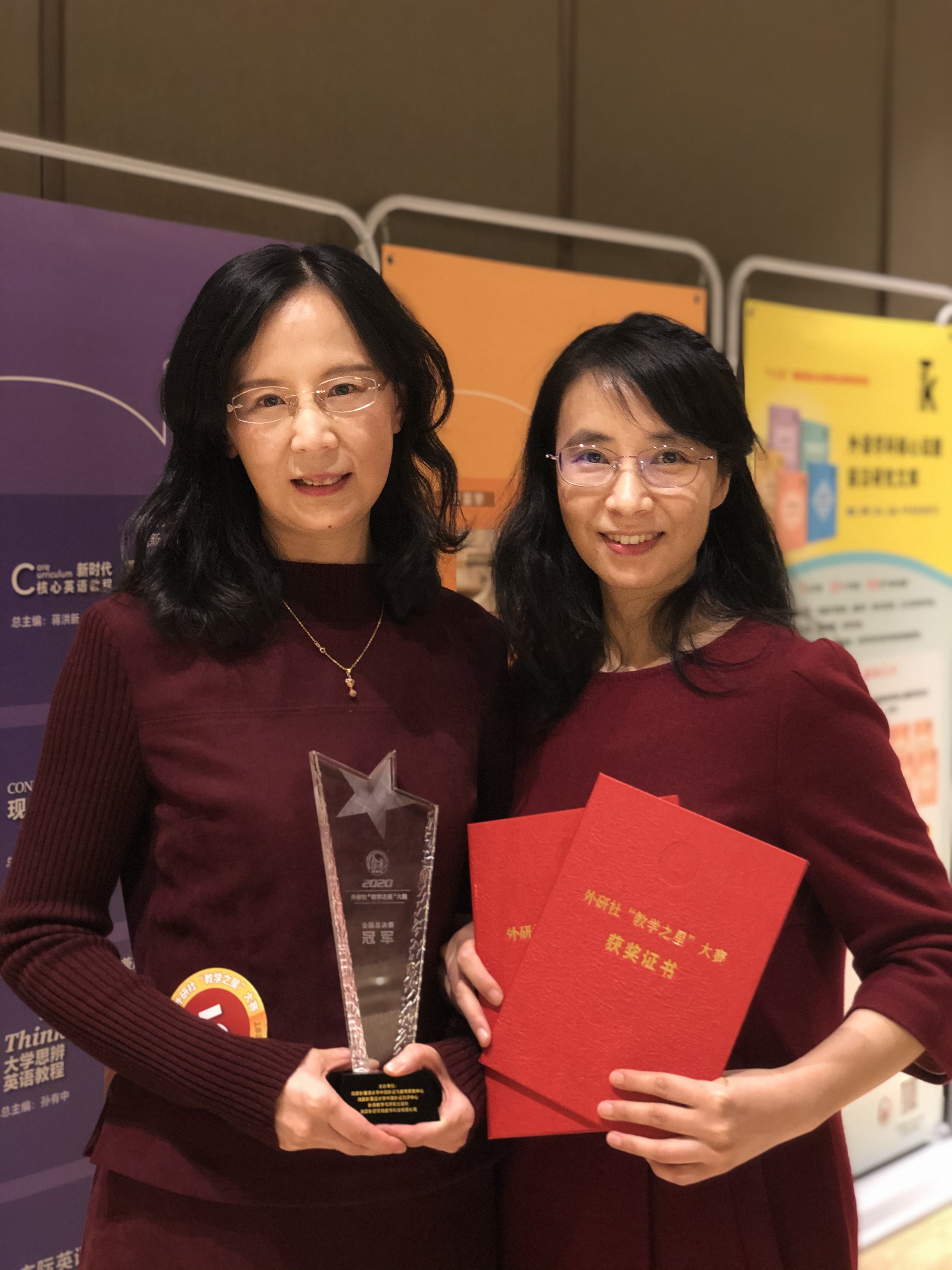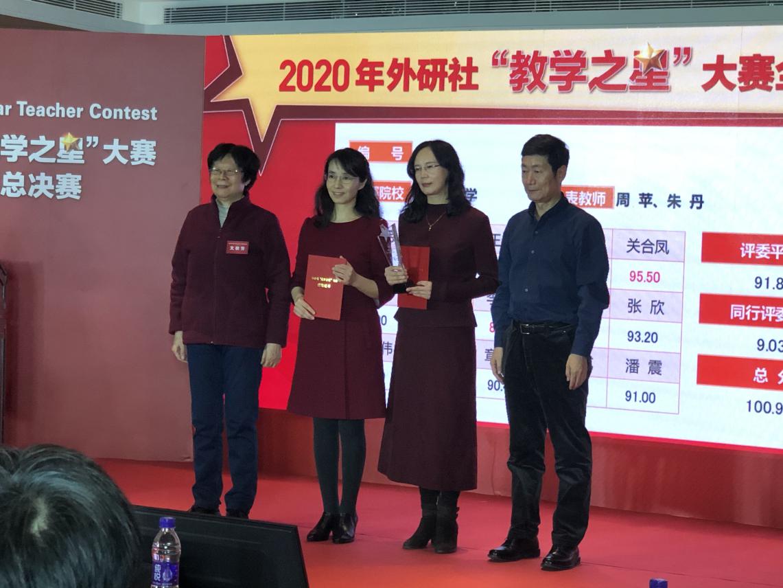 12月16日,2020年外研社“教学之星”大赛全国总决赛在北京举行,我校西语学院教师团队(周苹、朱丹、刘颖、黄萍、徐文培)力拔头筹,摘得外研社“教学之星”全国总冠军。