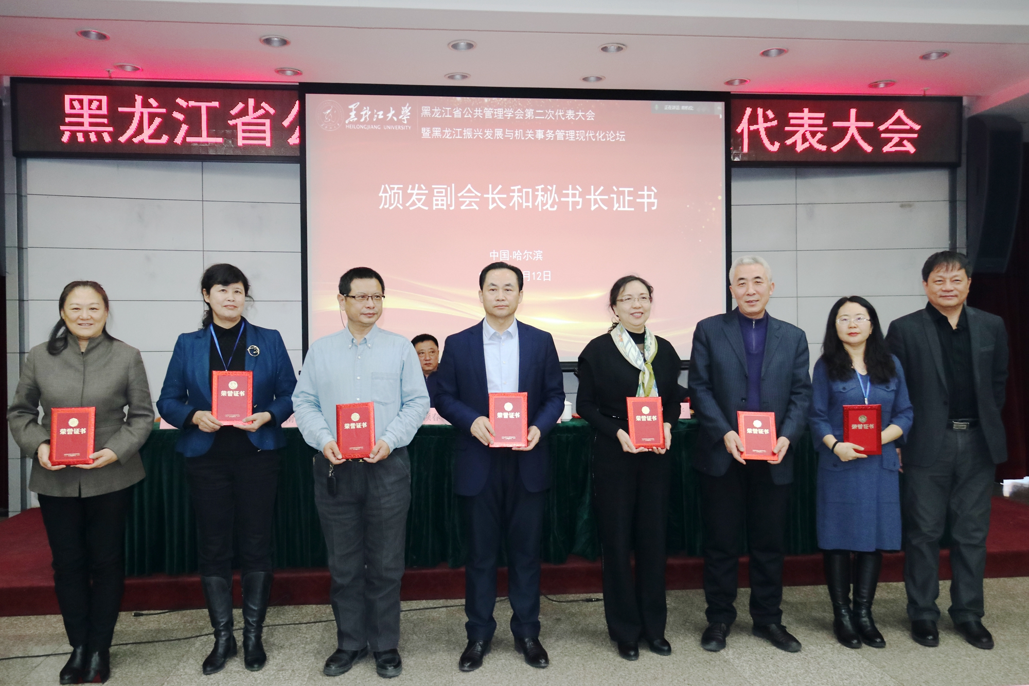 12月12日,黑龙江省公共管理学会第二次代表大会暨黑龙江振兴发展与机关事务管理现代化论坛在我校召开。本次大会由黑龙江省公共管理学会主办,6686政府管理学院、黑龙江省社会管理研究基地、6686机关事务管理研究中心、6686行政管理研究中心承办。省公共管理学会会长何颖,省政治学会会长朱宇,我校副校长张颖春,来自省机关事务管理局、中共哈尔滨市委党校等50余家单位代表参加会议。会议由省公共管理学会秘书长教军章主持。