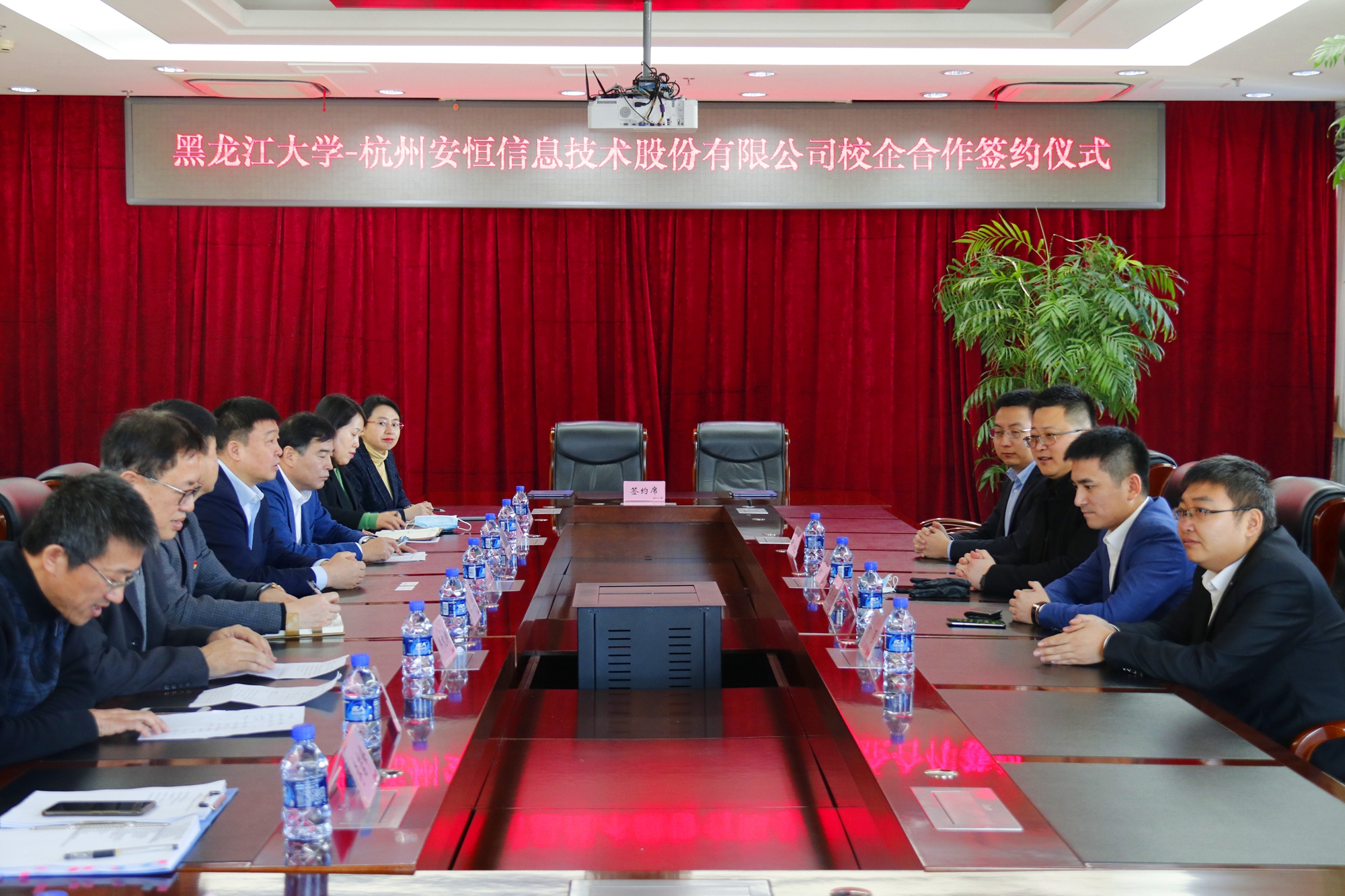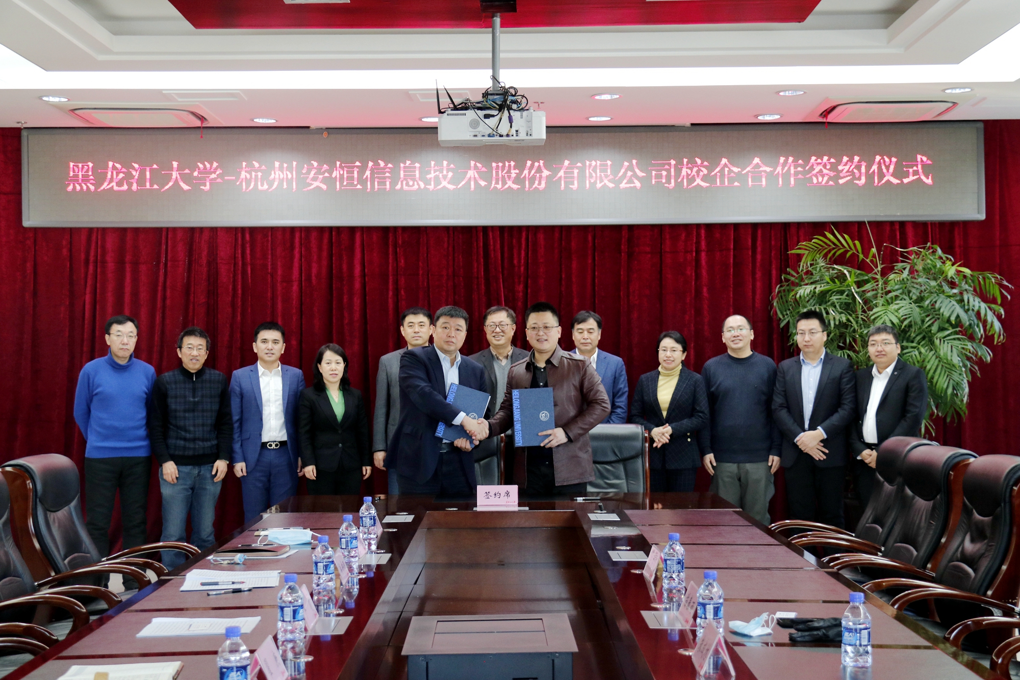 12月21日上午,我校与杭州安恒信息技术股份有限公司在主楼8楼会议室举行校企合作签约仪式。安恒信息技术股份有限公司高级副总裁苗春雨、哈尔滨办事处主任朱成林,我校副校长严明,教务处、重点建设与发展工作处、招生就业指导中心、数据科学与技术学院主要负责人等出席签约仪式。数据科学与技术学院副院长伍一主持签约仪式。