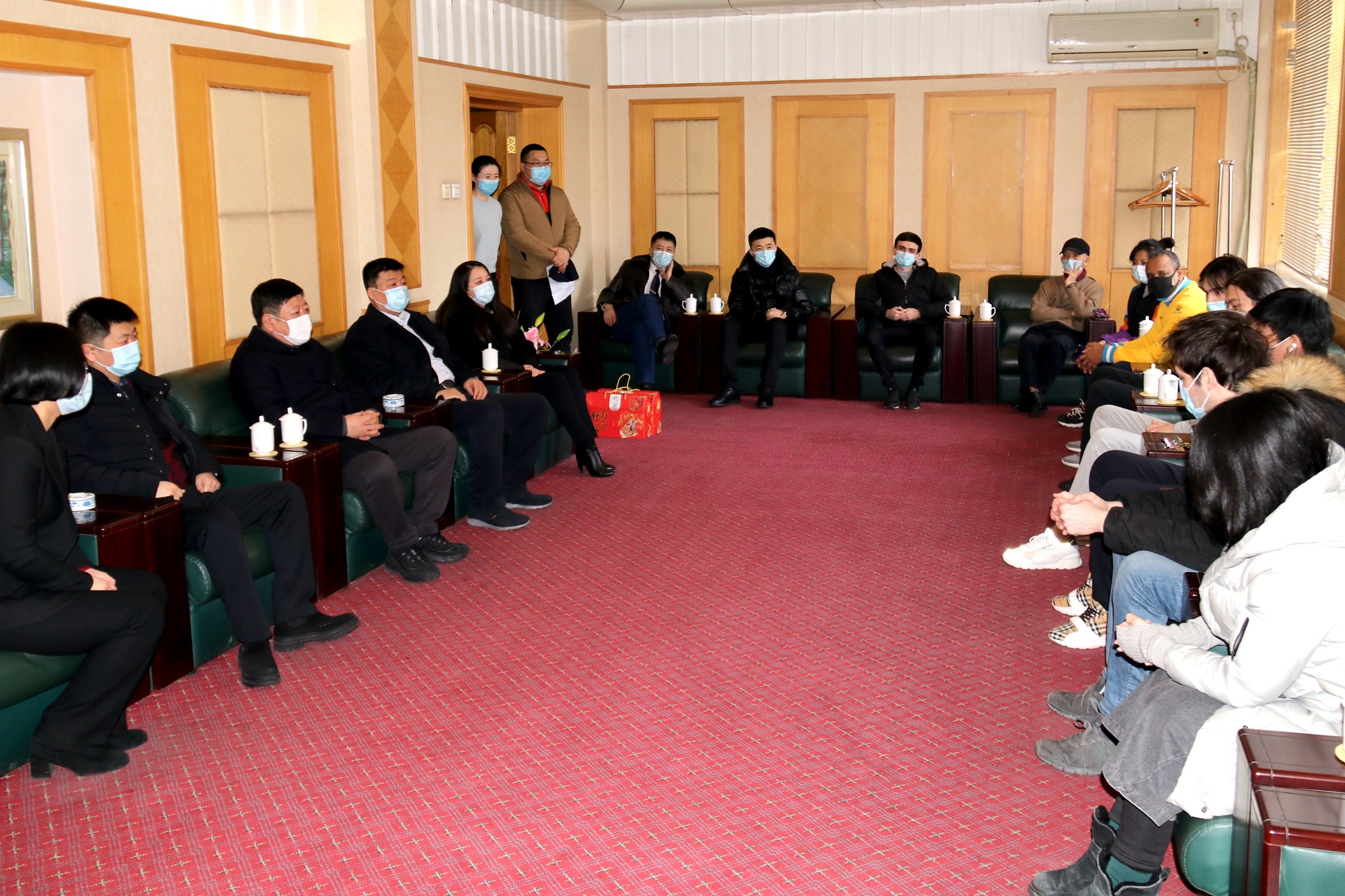在A区留学生公寓,王永清书记一行看望了留校的外教与留学生,询问他们假期的学习与生活情况,嘱咐师生注意个人防护,在学校过一个平安、祥和、难忘的春节。王永清书记一行来到学校总值班室,看望了坚守在一线的值班人员,询问了假期值班安排等情况,对他们坚守工作岗位表示敬意,向他们及家人致以诚挚的问候。