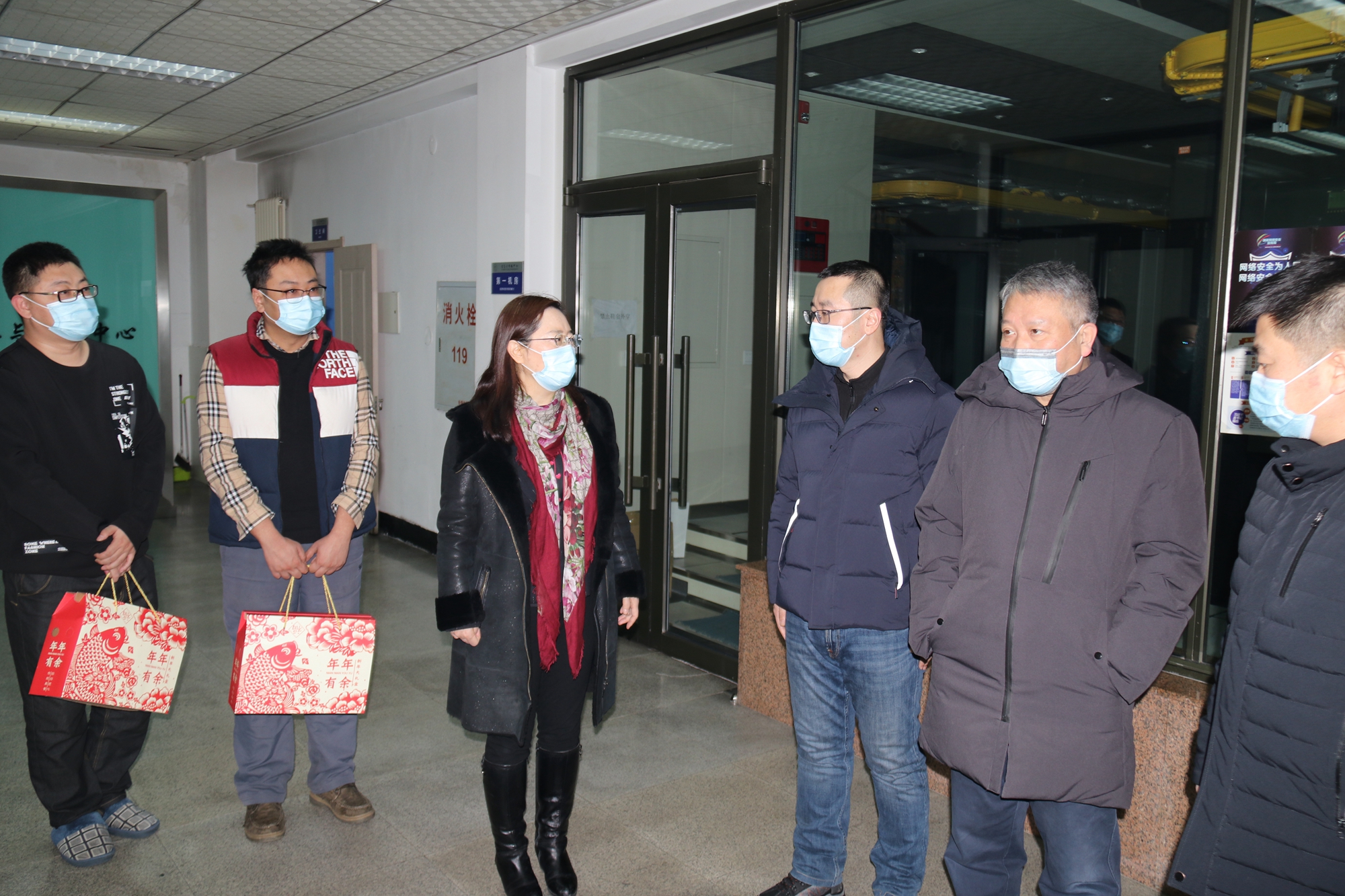 在子衿园综合南楼,付宏刚校长一行慰问了留校学生,与他们进行了亲切交谈,了解他们的学习及生活状况,祝福他们学业有成,新年有新收获。在信息与网络中心,付宏刚校长一行看望了在岗工作人员,向他们付出的辛劳表示衷心感谢,希望他们毫不松懈落实有关措施,切实保障校园安全。