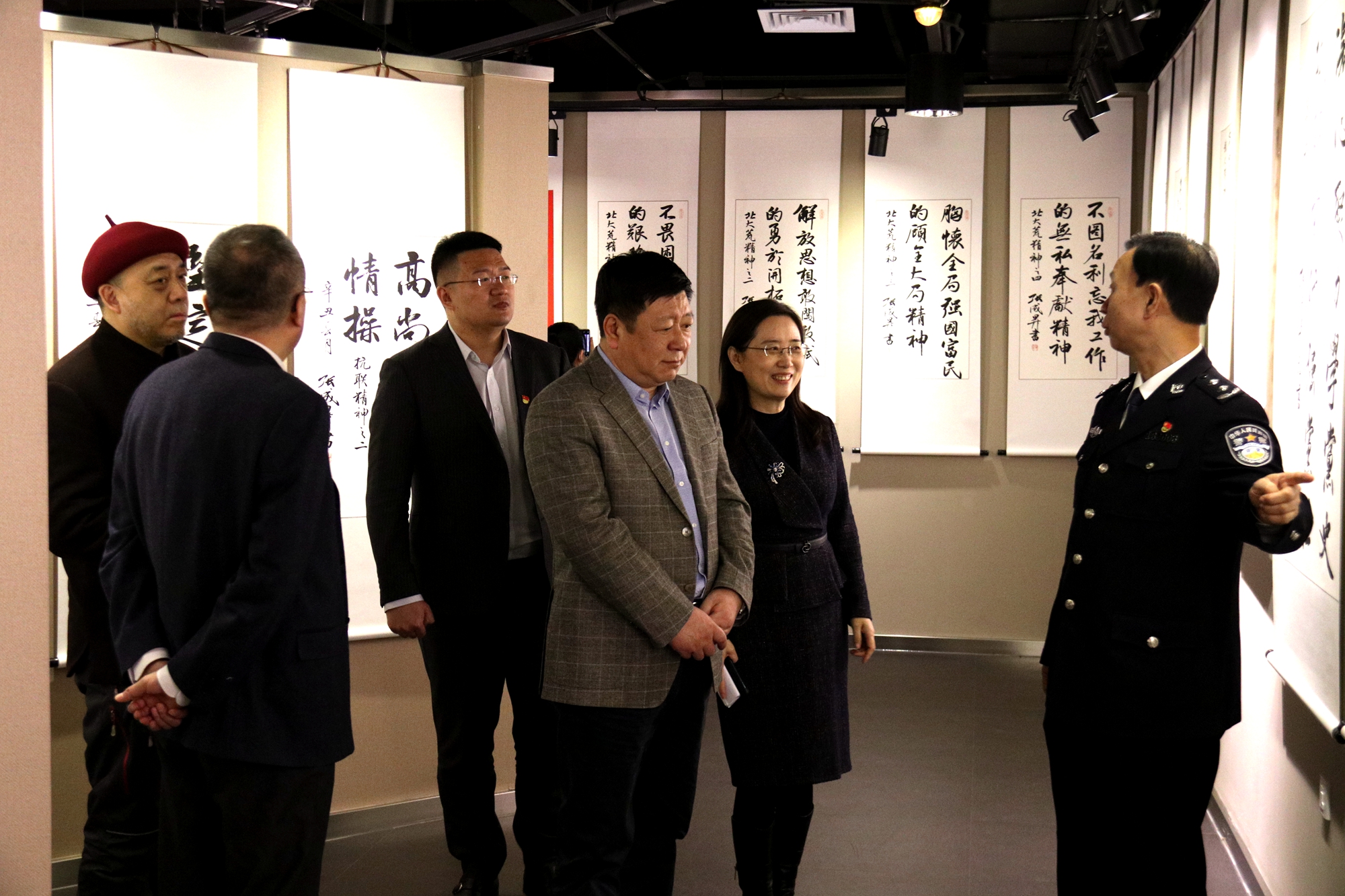 省文联主席韩会峰,校党委书记王永清,校党委副书记丁宏,省出入境边防检查总站副总站长张成生,省书法家协会副主席兼秘书长胡志平,学校办公室、组织部、宣传部、学工部、校团委、博物馆、艺术学院等部门负责人和师生代表参加开幕式并观看展览。开幕式由校团委书记周成刚主持。