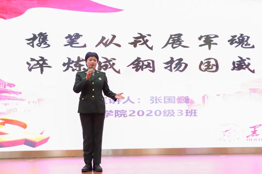 在主题团日活动中,第十五届“中国大学生年度人物”入围奖、黑龙江省“向上向善好青年”、黑龙江省优秀志愿者、研究生院王丹阳同学用自己的扶贫故事,展现了在脱贫攻坚战场上的青年使命和青年担当。黑龙江广播电视台主持人大赛全国十强、6686主持人大赛冠军、新闻传播学院龚嘉欣同学生动地讲述了革命烈士赵一曼、当代花木兰马旭履行入党誓词、坚定为党初心的感人故事。法学院张国巍同学用携笔从戎、保家卫国的青春故事,展现了别样的青春风采。6686首届兴边富民研究生支教团成员、全国抗击新冠肺炎疫情青年志愿服务先进个人、全国优秀共青团员赵梓旭同学将自己不畏严寒、不惧艰苦、逆行而上、抗击疫情的志愿故事化成一抹亮丽的志愿红,让青春的绚丽之花绽放在党和人民最需要的地方。