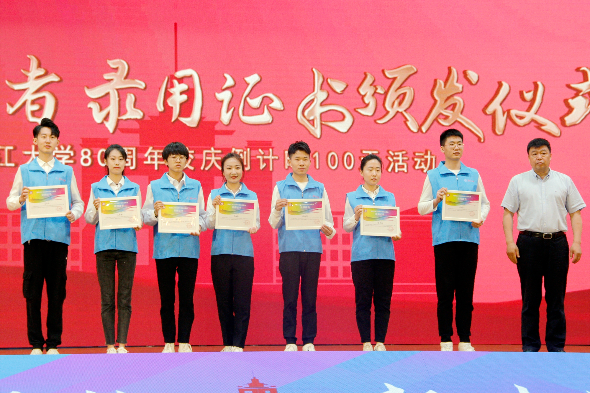 活动中通过视频回顾了校庆志愿者招募和工作情况,展现了黑大学子良好的精神风貌和志愿者风采。严明副校长为首批80周年志愿者代表颁发录用证书。
