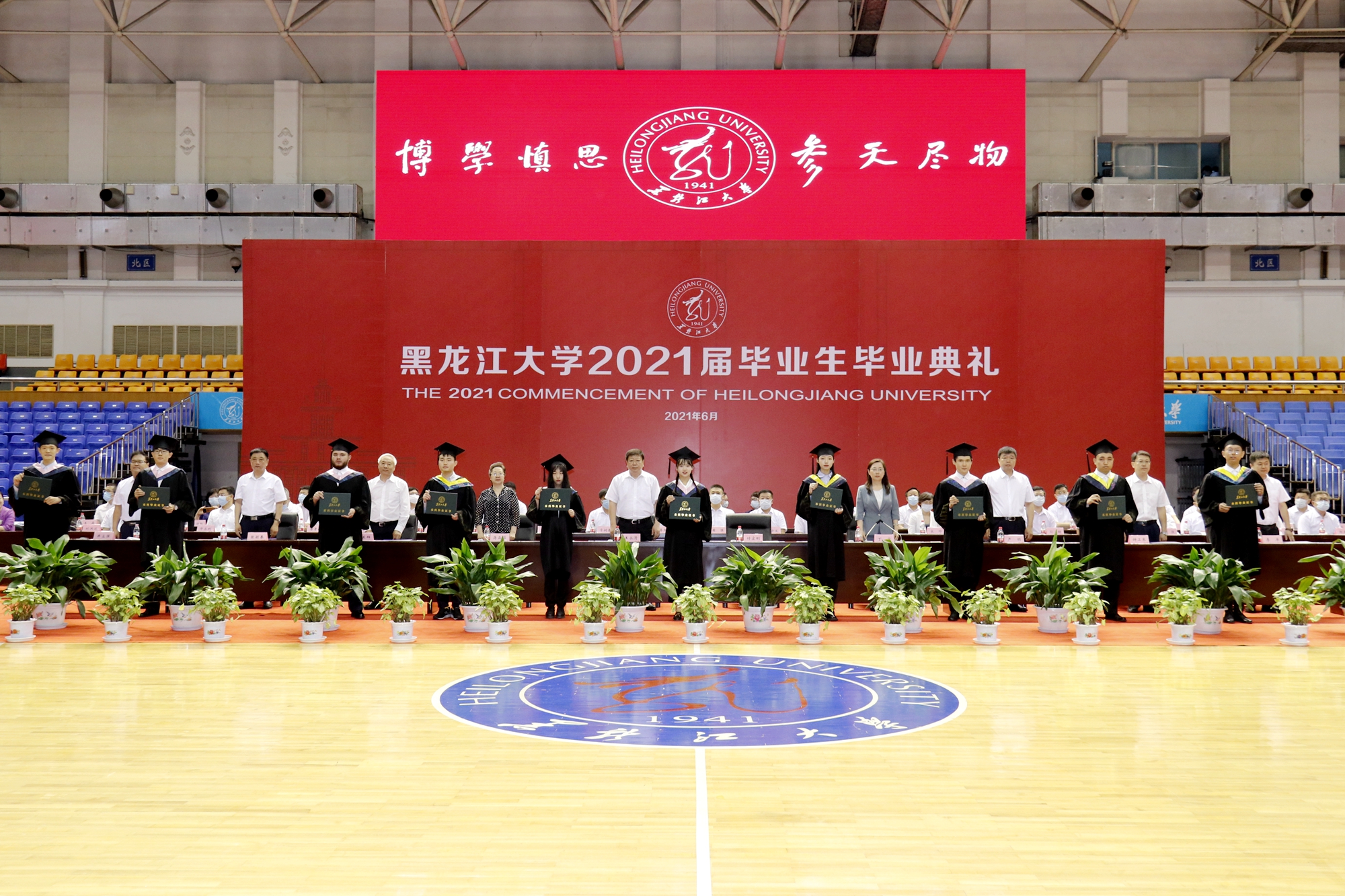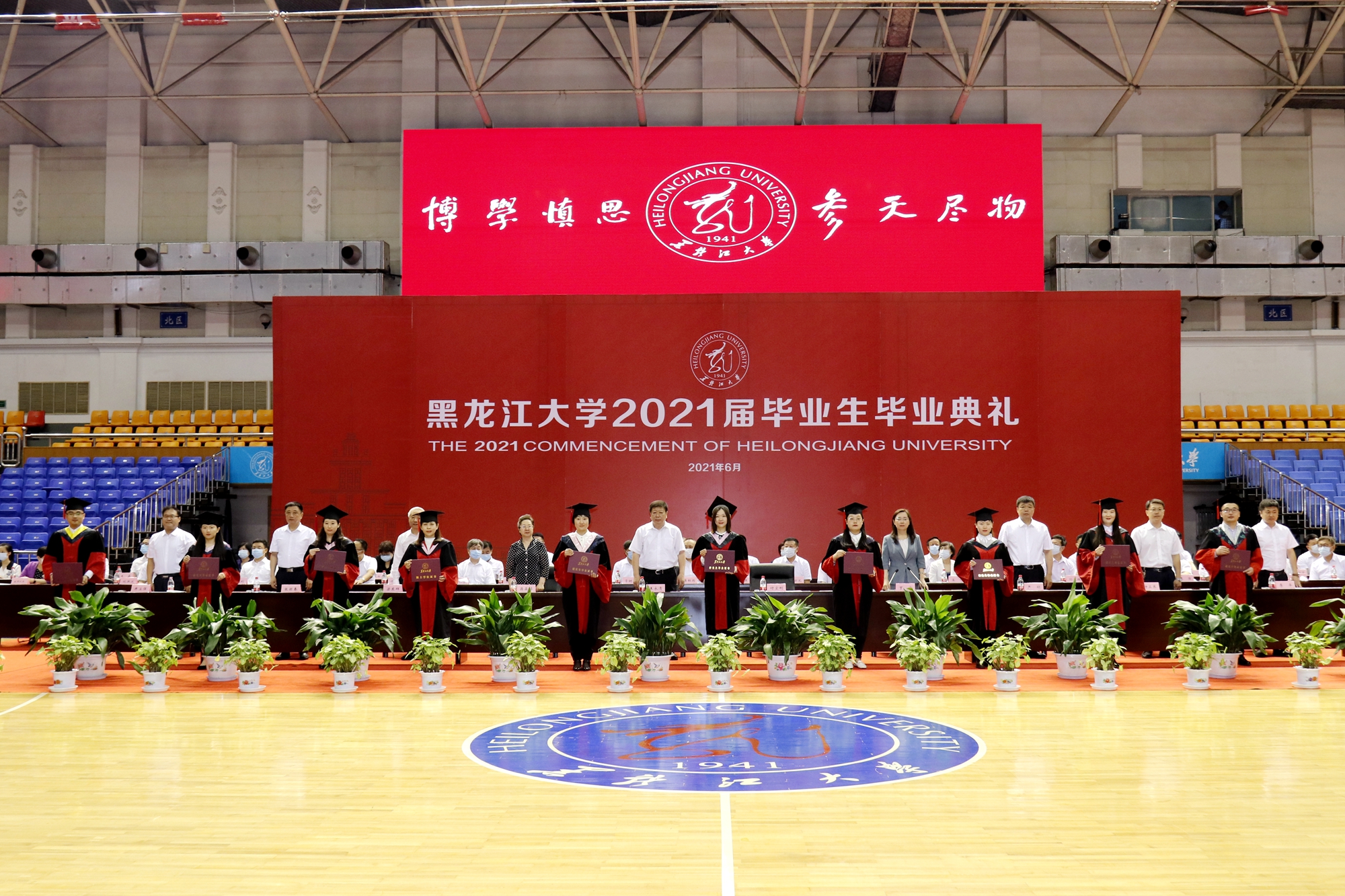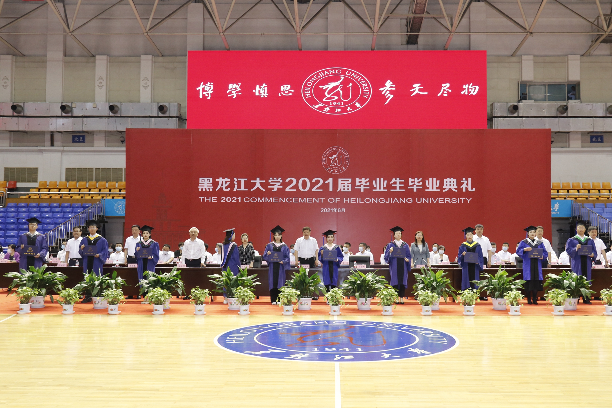校长付宏刚发表讲话。他向即将毕业的6170名本科生、1877名研究生送上最真诚的祝福和最美好的祝愿,向所有帮助同学成长成才的师长、亲友表示诚挚敬意和衷心感谢。他深情回顾了过去的四年,2021届黑大学子走过属于自己的“小时代”,见证祖国发展的“大时代”的历程,并真诚地为同学们提出三点希望:一是希望大家常怀感恩之心,秉持家国情怀。希望同学们无论何时何地都要传承“黑大人”流淌不息、代代相传的精神血脉,保持热情和善良,感恩祖国和社会、感恩家庭和他人,自觉担负起当代青年的时代使命和社会责任,将感恩之心化为爱国之情、报国之志,练就敢担大任的勇气,争做走在时代前列的奋进者、开拓者、奉献者。二是希望大家务实笃行,练就真本事。希望同学们传承以俄语词典编译团队为代表的“黑大人”的意志品格,树立终身学习理念,持之以恒求真学问、练真本事,不断汲取知识力量,不断提升掌握和运用知识的能力,脚踏实地、立足本职、埋头苦干,敢于创新,追求卓越、寻求突破,淬炼过硬本领,靠真本事立足、立业、立家。三是希望大家涵养人生智慧,乐观豁达。希望同学们心中有阳光,脚下有力量,以“士不可以不弘毅”的坚毅品格和持久定力,始终坚守初心,传承黑大精神,秉承黑大校风,与祖国同心、与时代同行,坚持理想不懈怠,珍惜韶华担使命,用情怀、本领和智慧擦亮“黑大人”这个无上光荣的称号,向时代、向祖国、向母校交出优秀答卷!