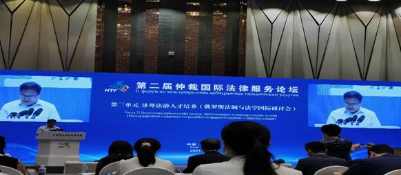 井立强副校长致辞。他指出,目前国家亟须培养一批胸怀祖国、放眼世界、素质过硬的涉外法治人才队伍。本次研讨会以“涉外法治人才培养”为主题,回应了国家的重大关切,也必将能够促进中俄两国法制进一步交流,加强两国在法律领域的进一步合作。