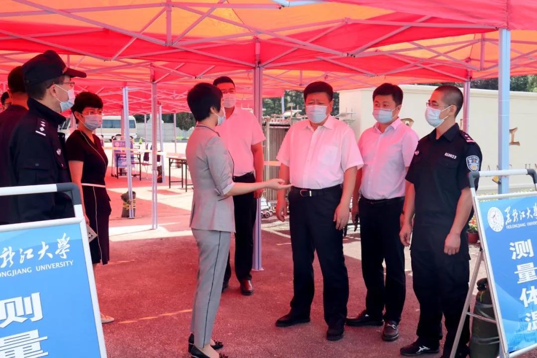 校领导一行先后到学校正门、宿舍楼、学府宾馆检查指导学生返校工作,并对学生报到、入住宿舍、应急情况处理等场景进行模拟演练,全力保障返校工作平稳、有序进行。