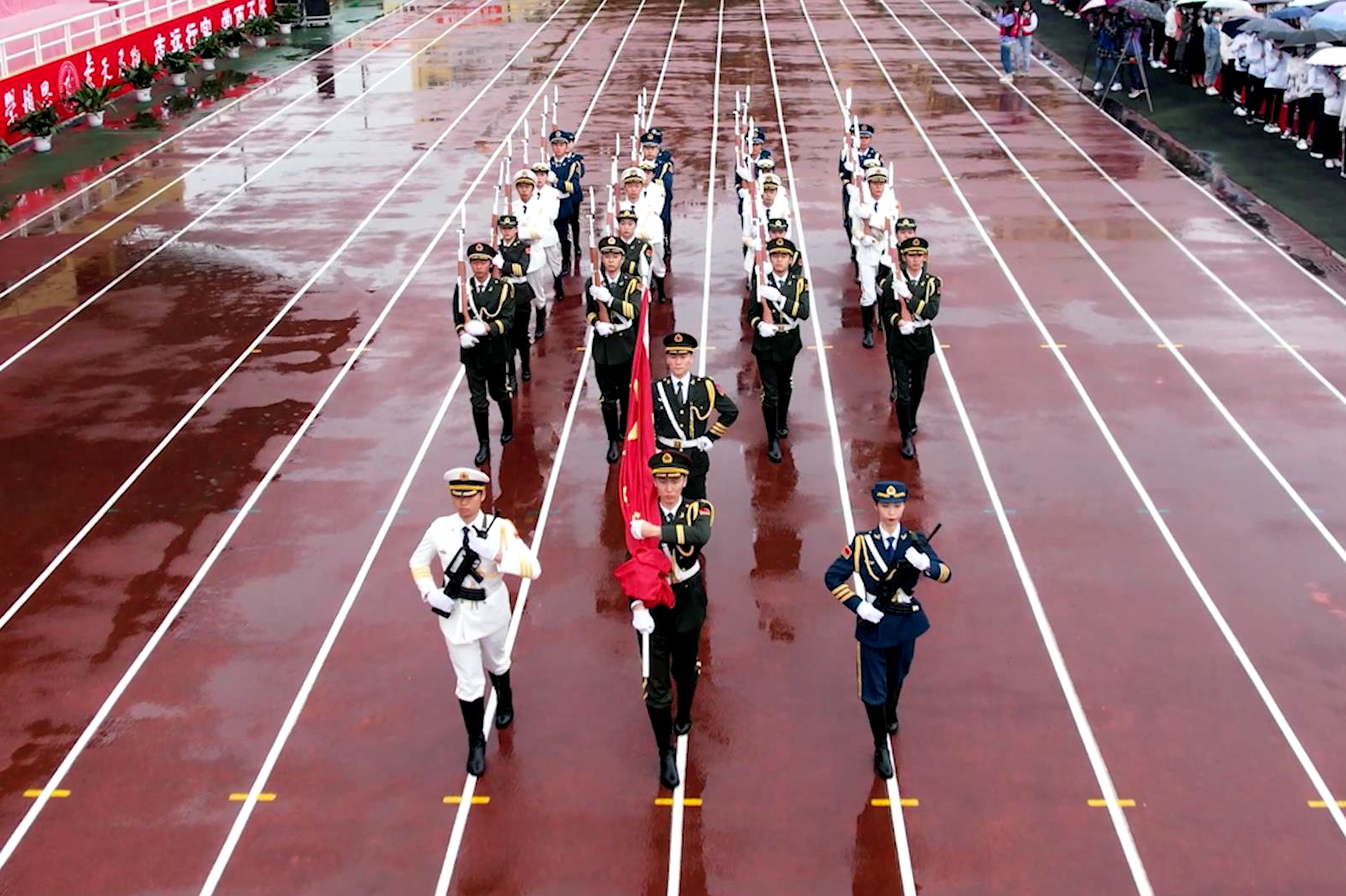 在雄壮的国歌和激昂的校歌声中,国旗和校旗冉冉升起,开学典礼正式开始。