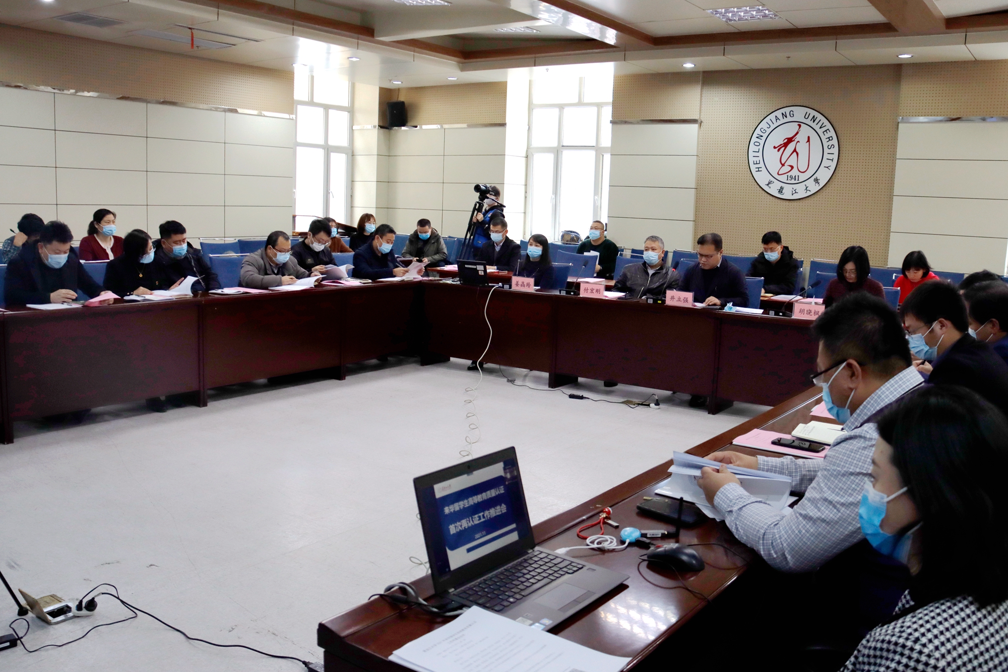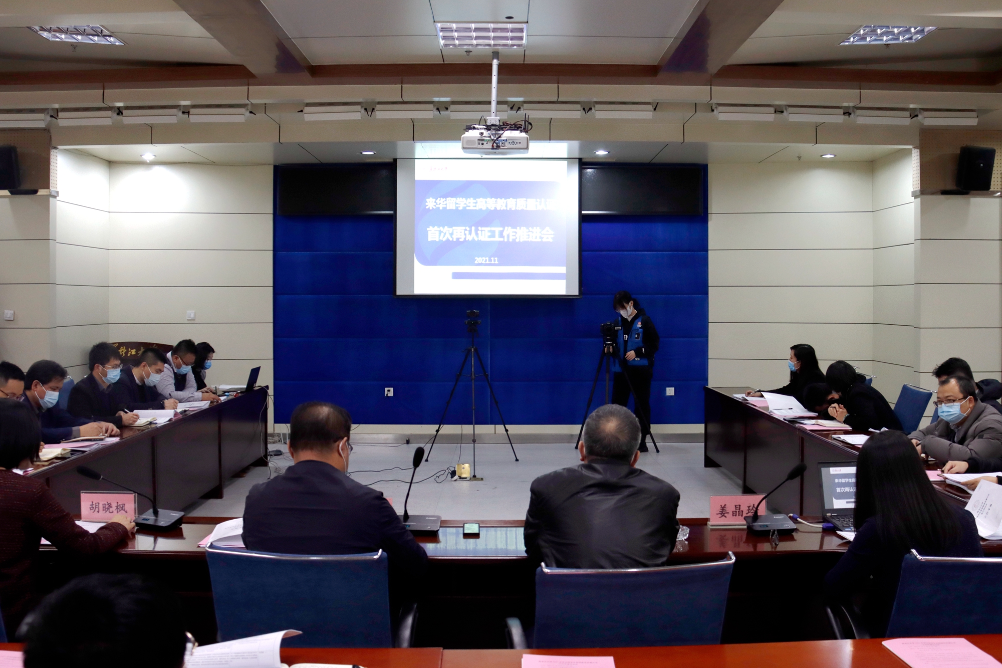 11月22日下午,我校在主楼226会议室召开来华留学生高等教育质量认证首次再认证工作推进会。校长付宏刚、副校长井立强,相关职能部处和留学生教学单位的领导出席本次会议。会议由国际文化教育学院院长、国际合作与交流处处长胡晓枫主持。本次会议采取线上线下相结合的形式召开。