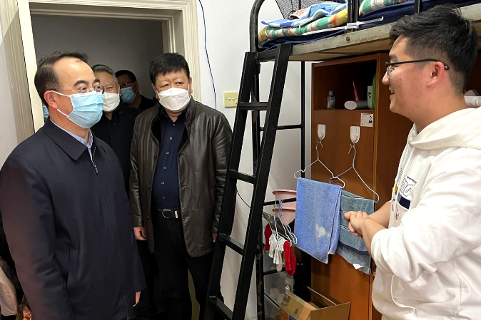 陈延良指出,要学习贯彻习近平总书记在中共中央政治局常务委员会会议上的重要讲话精神,深入落实全国新冠疫情防控电视电话会议精神,按照3月18日省委常委会议、全省疫情防控电视电话会议工作要求,时刻紧绷疫情防控这根弦,以“硬核”的措施、有力的行动,推动形成校园疫情防控工作“闭环”。他强调,当前是疫情防控的关键时期,必须坚持科学防控,强化闭环管控,精准把握师生健康状况,要加强对学生的思想引导,关注学生的心理健康,全力做好校园准封闭式管理期间教育教学工作衔接和学生服务保障的工作。(摄影:苏诗乔 李昌刚 张碧雪 李冰冰 李银涛)