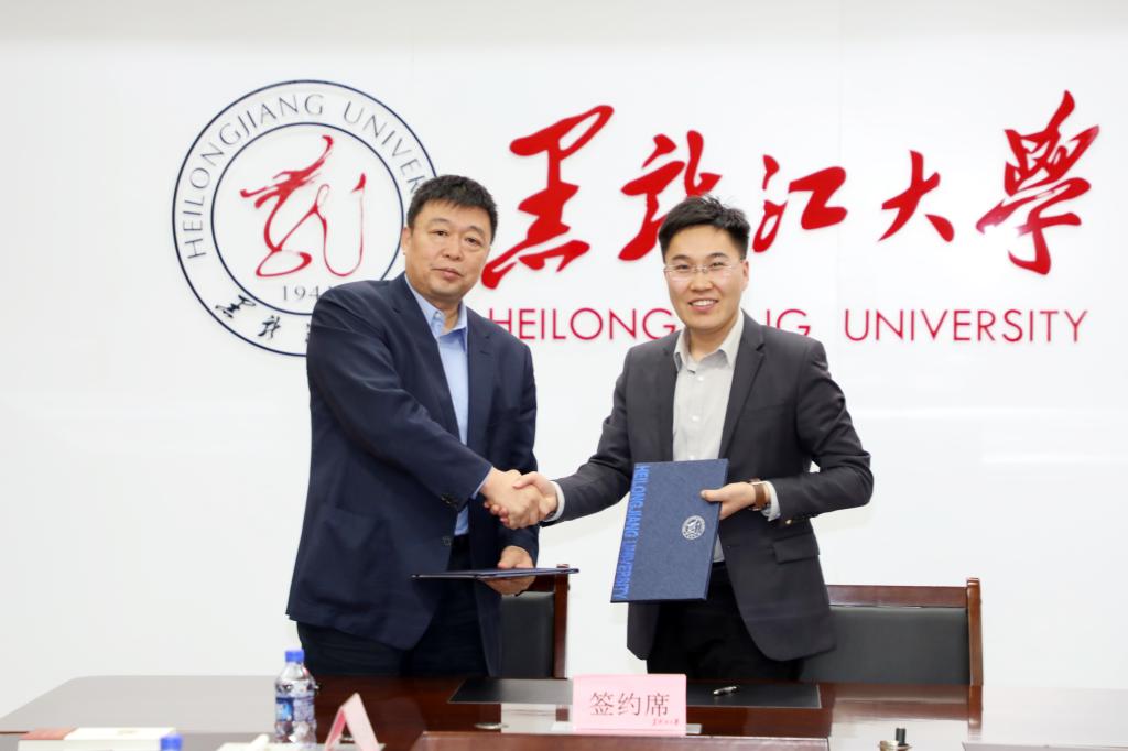 仪式上,严明与杨海全共同签订“6686与央广网黑龙江频道共建专业学位实践基地”协议。
