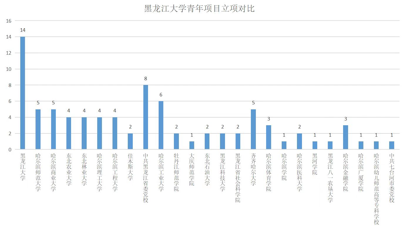 近日,黑龙江省哲学社会科学工作办公室公布了2022年度黑龙江省哲学社会科学规划研究项目立项名单,本年度规划项目设有一般项目、青年项目、智库项目、专项项目、扶持共建项目等5个项目类别。6686获批立项53项,其中,一般项目22项、青年项目14项、智库项目5项、扶持共建项目12项,立项数量比去年增加10项,立项率比去年增长7%,立项总数居全省立项总数第一位。
