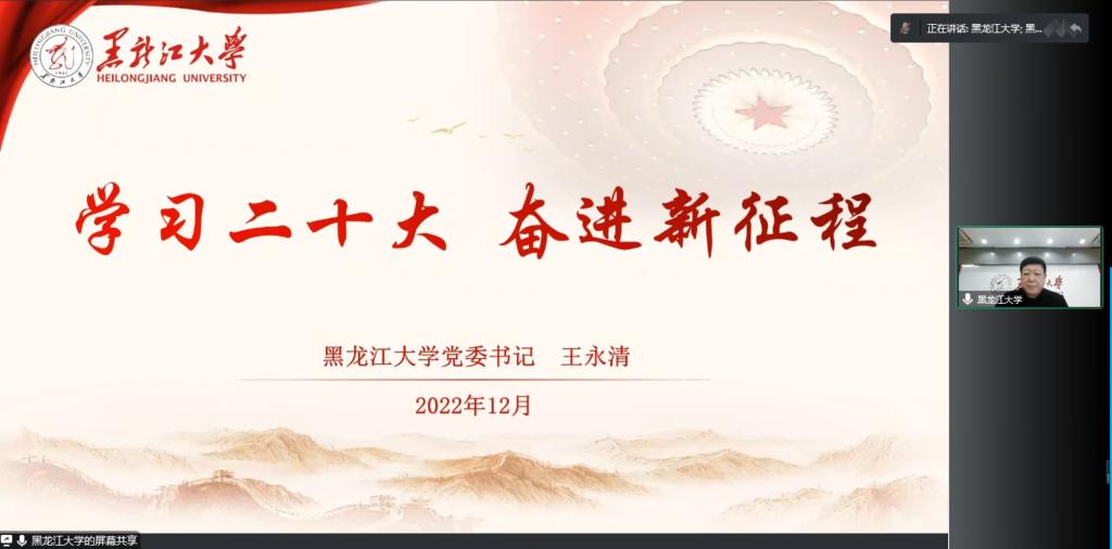 12月1日下午,我校以线上会议的方式召开学习贯彻党的二十大精神宣讲报告会。校党委书记王永清以“学习二十大 奋进新征程”为主题,为我校领导干部作专题讲座。我校全体校领导、全校中层干部、省委及学校党的二十大精神宣讲团成员参加会议。会议由党委宣传部部长杨其滨主持。
