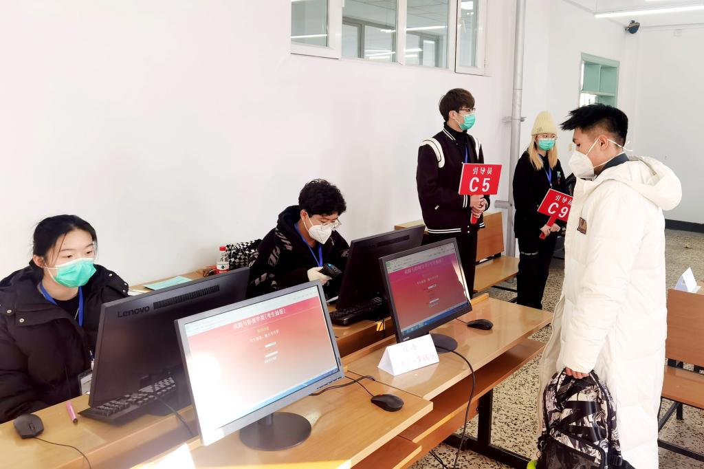 李石一行从入门开始“走流程”,实地查看了备考室、考场、备用考场、考务室、监控室及考场外围环境,认真听取了考试情况汇报,对6686考务工作给予充分肯定,尤其对考场秩序、安检、保暖和通行等细致周到的考生综合服务保障举措给予高度赞扬。