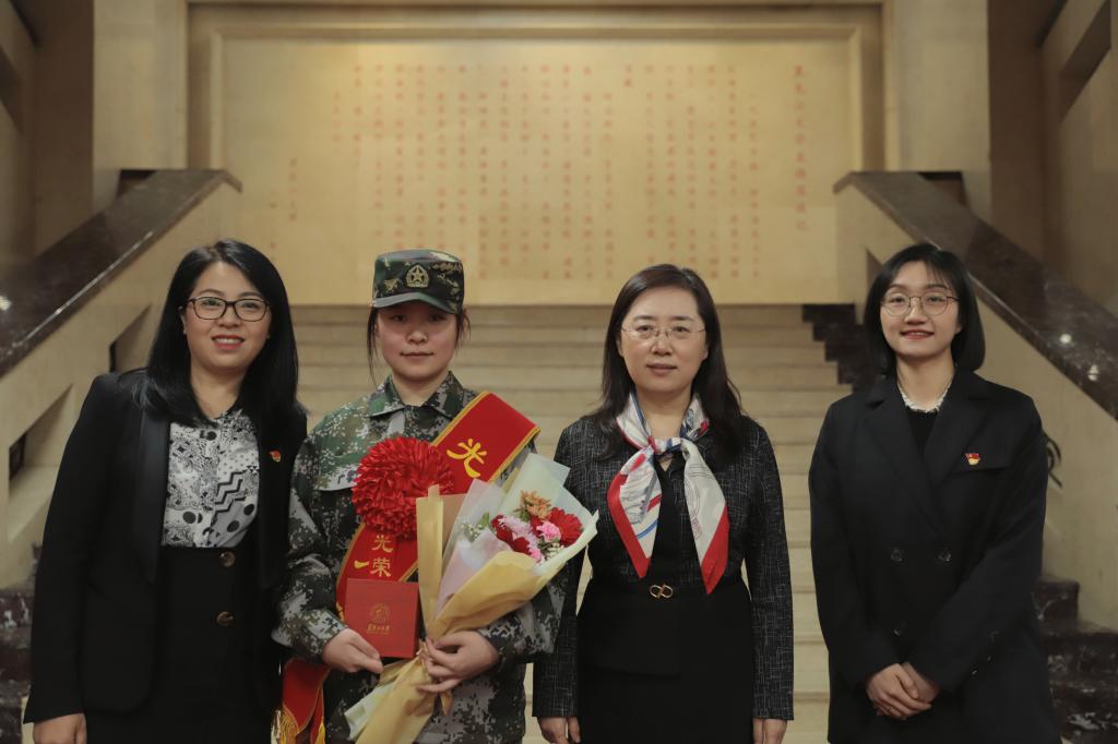 最后,参加仪式相关领导、老师与全体预定女兵合影留念,话别嘱托,殷殷送行。