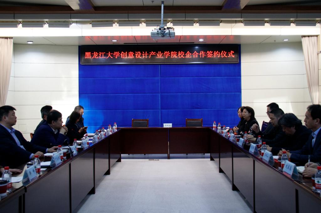 3月17日下午,我校在主楼A226会议室举行创意设计产业学院校企合作签约仪式。副校长严明、哈尔滨曼哈顿多元集团有限公司总经理江岩、黑龙江三特纺织服装产业集团有限公司副总经理李延山、黑龙江企商投资管理有限公司KC皮草总经理李汝梅、北京澜景科技公司运营总监陈硕、哈尔滨赛格印象文化设计有限公司总经理杨宏伟,教务处、艺术学院相关负责同志参加仪式。教务处处长吴华洋主持签约仪式。