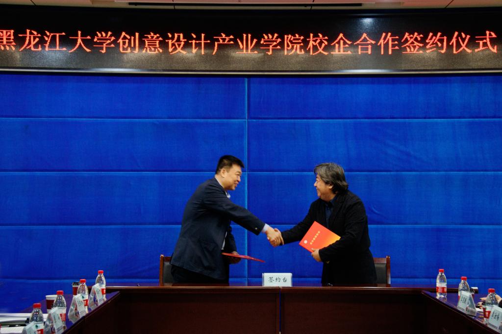 严明在签约仪式上致辞,他表示,共建我校创意设计产业学院,是学校推动应用型设计人才赋能地区经济与文化创新的新契机,也是学校艺术学科服务数字经济、创意设计、冰雪文化和时尚产业发展的新起点,更是推动校企合作共同发展,推进优质教育资源开放共享,促进黑龙江省技术设计人才培养模式创新和创意设计成果的有效转化。他指出,此次我校与五家行业知名企业合作共建创意设计产业学院,可以充分发挥高等教育在教学、科研、人才培养方面的经济优势,切实促进设计人才创意成果的有效转化。通过学校与企业在教学改革、项目孵化、园区实训等多领域实现全方位合作,利用产业学院建设的资源和行业优势,我校将持续深化高等教育综合改革,不断深化产教融合、协同创新。他相信,在合作单位的共同努力下,产业学院的建设将有序进行并取得工作成果。在服务社会、地方建设的过程中,集中多方优势资源,互为补充,互利共赢,进一步为龙江经济建设与社会文化发展做出更新、更大贡献。