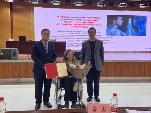 4月6日14时,俄罗斯自然科学院院士、莱布尼茨欧洲自然科学院院士、莫斯科国立大学人工智能与智能系统高等研究院语义分析及计算机辅助教学实验室副主任、俄罗斯人民友谊大学语文系外语教研室教授、语言学博士伊琳娜·卡拉布拉托娃院士应邀为我校师生作了题为《数字人文: 人文科学对人工智能发展的机遇与挑战》的讲座。副校长井立强出席活动,俄语学院院长孙超主持活动。