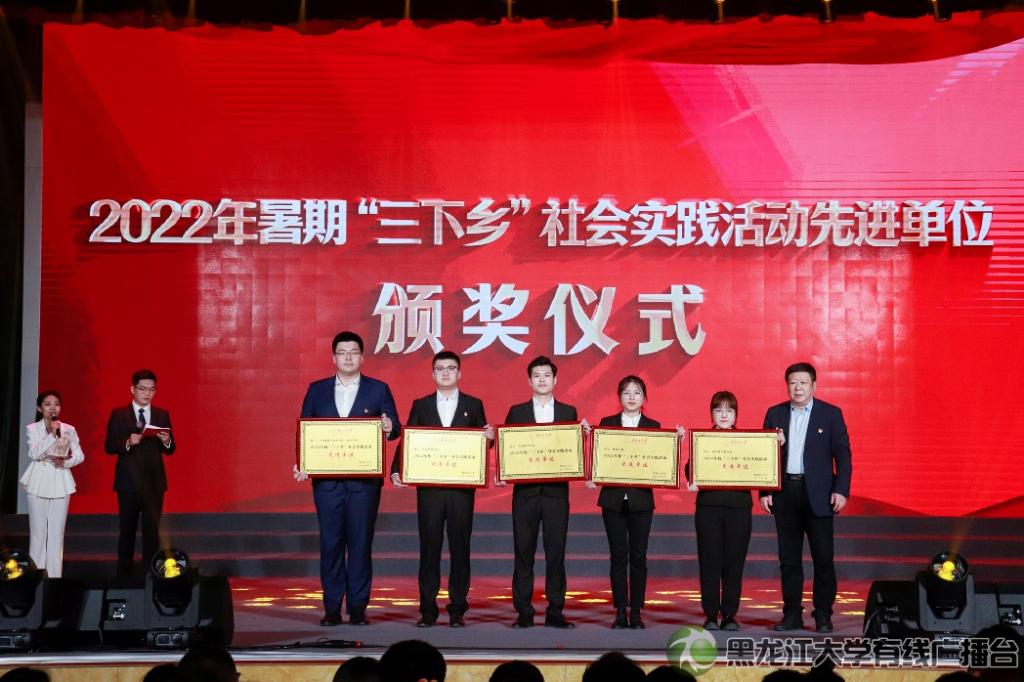 颁奖典礼上,校领导王永清、丁宏、梁东辉、井立强、李卓及相关职能部处负责人分别为校第二十七届“校园最佳”大学生、2022年优秀专职团干部、2022年暑期“三下乡”社会实践活动先进单位、“学习二十大,永远跟党走,奋进新征程”2022级新生大合唱比赛优秀组织奖单位进行颁奖。