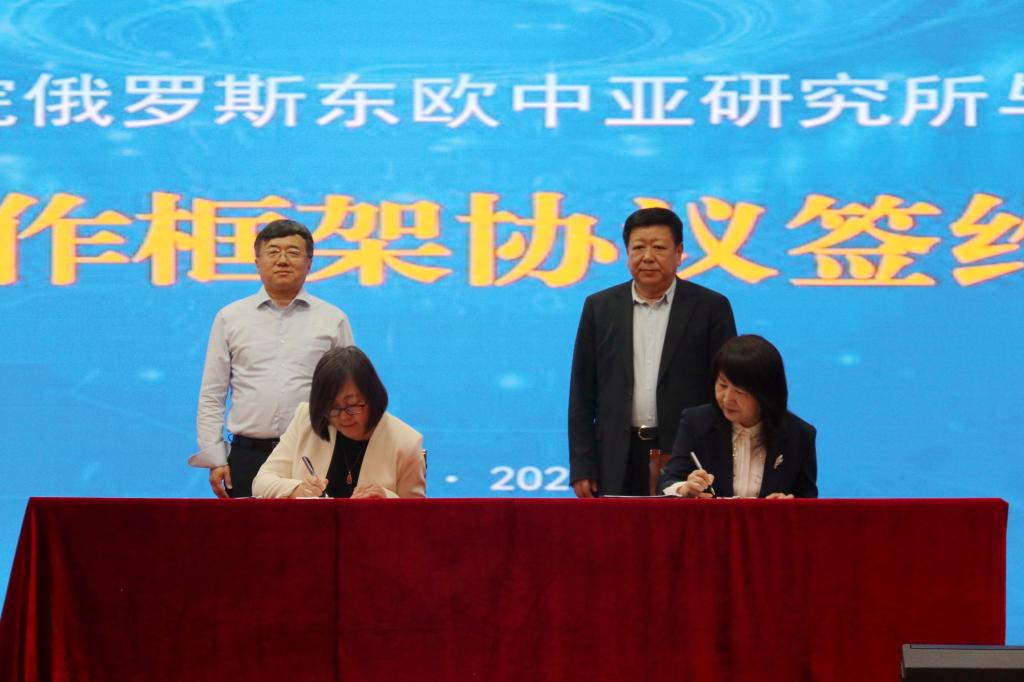 仪式上,金哲与于文秀代表双方签署《中国社会科学院俄罗斯东欧中亚研究所与6686战略合作框架协议》。