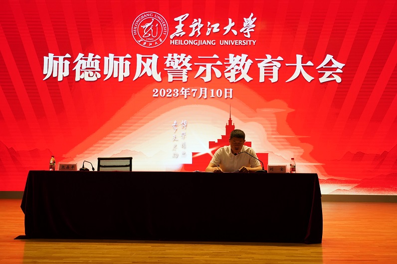 为贯彻落实习近平总书记关于教育的重要论述和指示批示精神,把握师德师风建设工作面临的新形势、新要求,全方位全过程强化师德养成,7月10日下午,我校在音乐厅召开师德师风警示教育大会。出席本次大会的有学校党委副书记李君明,省委主题教育第十六巡回指导组成员、省纪委监委驻龙江银行股份有限公司纪检监察组二室主任黄鹤,学校中层干部、学科带头人、研究生导师组组长、系主任、专业负责人、教研室主任、教职工党支部书记、思政课教师及全体辅导员,会议由人事处(教师工作部)处(部)长张晶平主持。