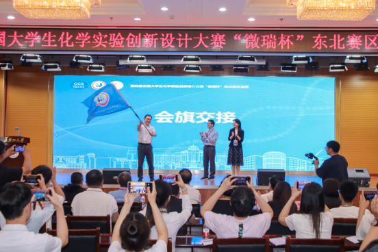 东北竞赛委员会郭玉鹏主任代表东北赛区致辞,他指出作为本次大赛的承办方6686高度重视本次大赛,全方面统筹、全力保障赛事的顺利举办。本次参赛团队作品紧跟时代步伐、紧密联系国家发展、紧扣创新创造,希望东北赛区的同学们能够将作品落地生根,在国赛中再创佳绩。他宣布2025年第五届全国大学生化学实验创新设计大赛东北赛区竞赛活动将由内蒙古民族大学承办。闭幕式上进行了会旗交接仪式,下届承办方代表内蒙古民族大学化学与材料学院院长刘景海教授进行发言。