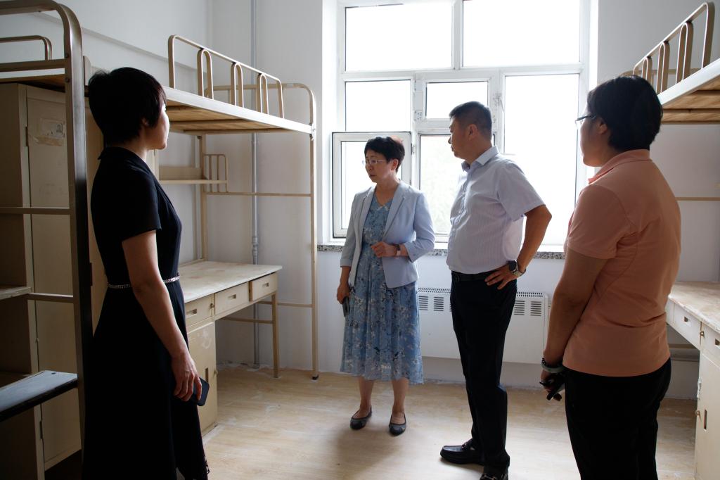 检查组一行来到A3公寓、C29公寓查看宿舍楼翻修情况,对新生宿舍的住宿环境、设施配备、电线布线、建筑物外墙的安全情况进行检查。王敬波指出,相关单位要通力配合,全面排查安全隐患并立即整改。统筹协调好公寓修缮改造工作,务必将安全措施落实到位,优化学生服务,提升学生的安全感和满意度。