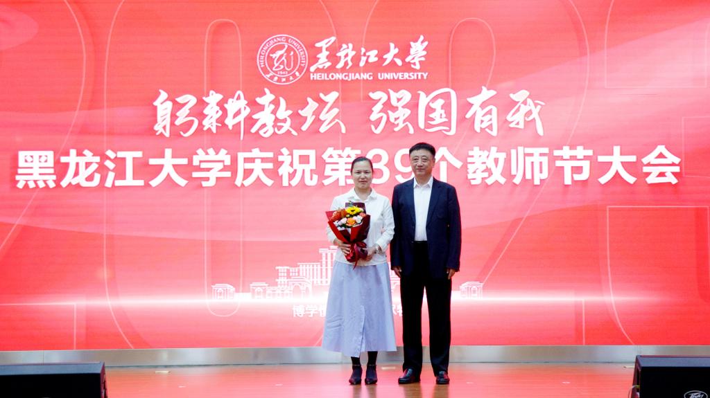 校长王敬波致辞。她代表学校向为学校发展倾注智慧和心血的全体教职工致以节日的问候和衷心的感谢。她指出,唯有传承优良传统,才能让“师道”光芒薪火相传、历久弥新。回望来时路,一代代黑大教师始终牢记职责使命,努力成为党和人民满意的“四有”好老师和“学为人师、行为世范”的“大先生”;唯有扎实落实人才强校战略,才能让6686行稳致远、进而有为。学校从建立到成长、从发展到壮大,始终离不开高素质的教师队伍。近年来,学校积极培育支持各类教师和人才成长,厚植人才沃土,为推动高质量发展积蓄动能;唯有通过全方位保障,才能激励教师砥砺前行。学校历来重视和牵挂广大教师,始终围绕教师的所急、所盼、所难、所需推动体制机制改革,不断改善教学、科研、生活环境,全方位做好教师关爱工作,增强全体教师的认同感、荣誉感和归属感;唯有牢固树立“躬耕教坛,强国有我”的志向与抱负,才能让教师职业灼灼其华、熠熠生辉。进入新时代,全体黑大教师潜心教书育人、矢志科技创新,产出了众多优秀教学科研成果,为国家和龙江经济社会发展作出了积极贡献。